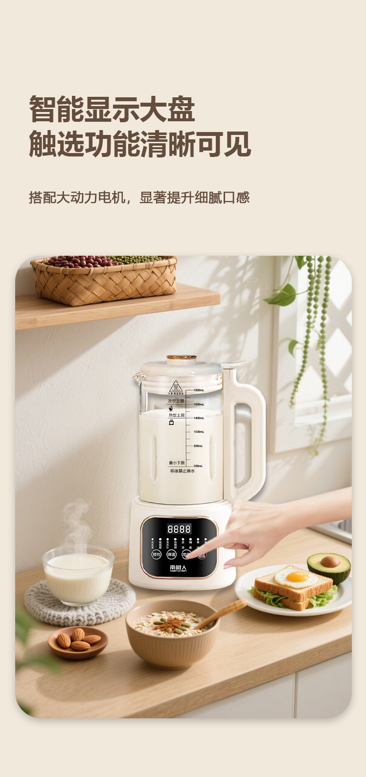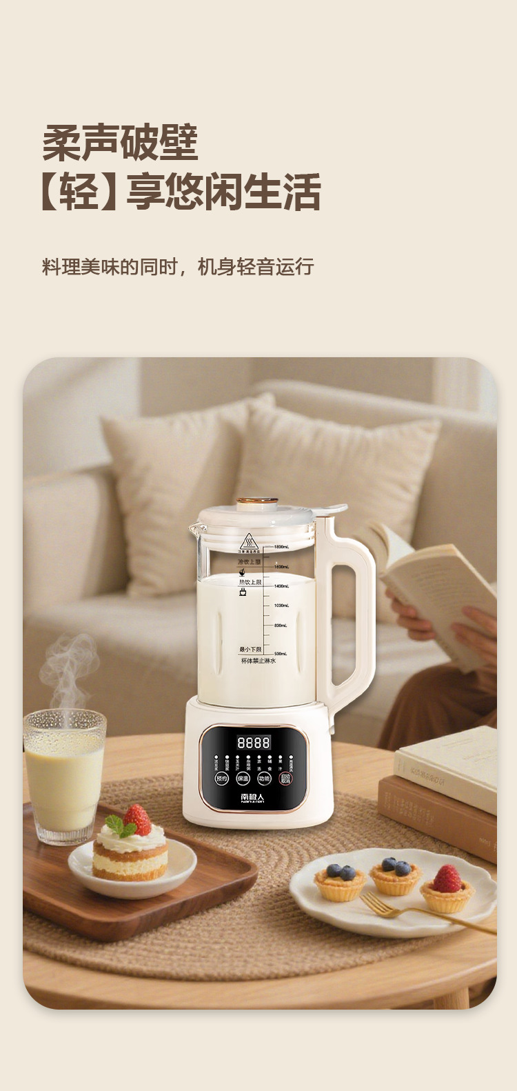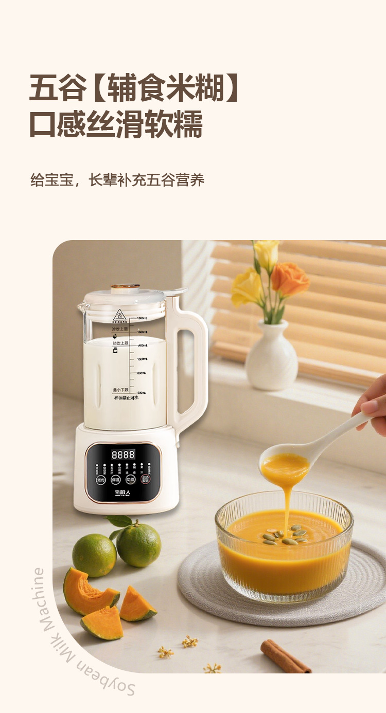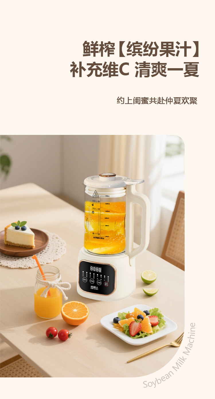 南极人大容量1800毫升智能破壁机迷你豆浆机家用全自动无渣免滤款