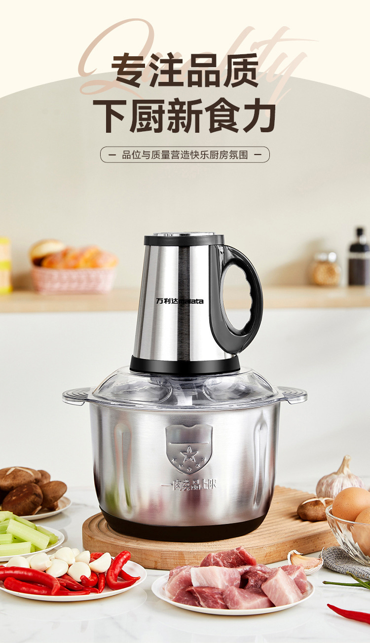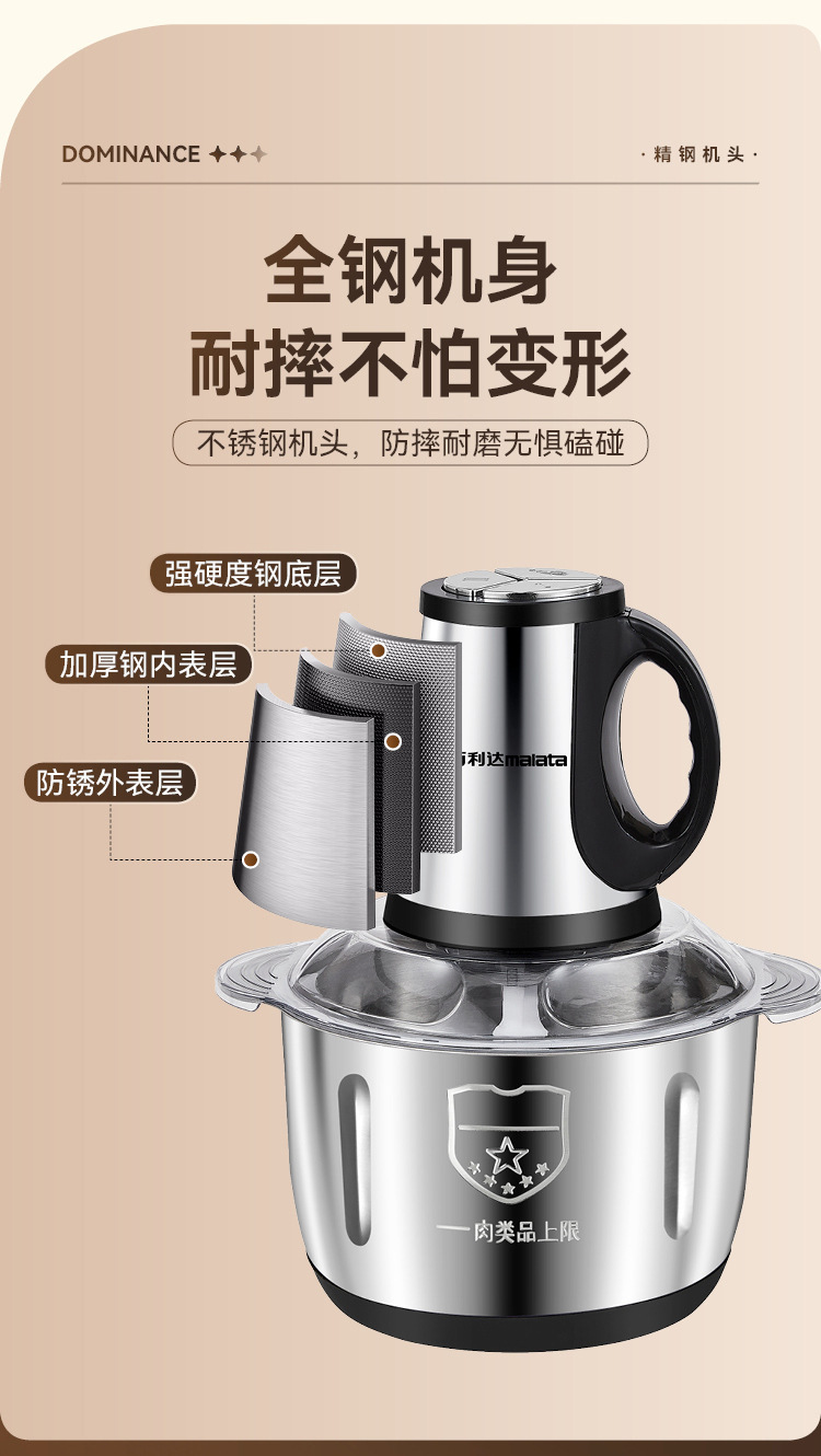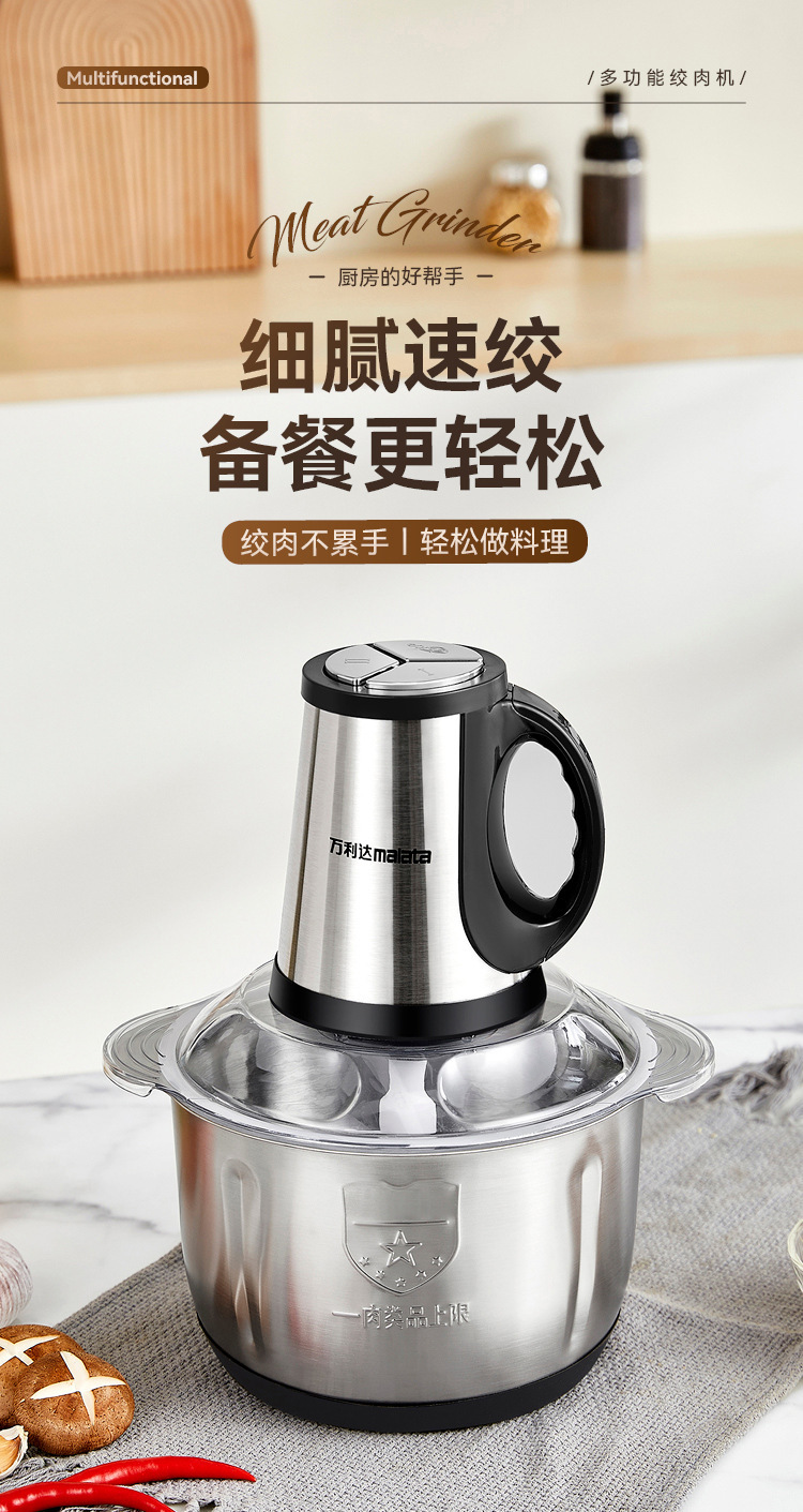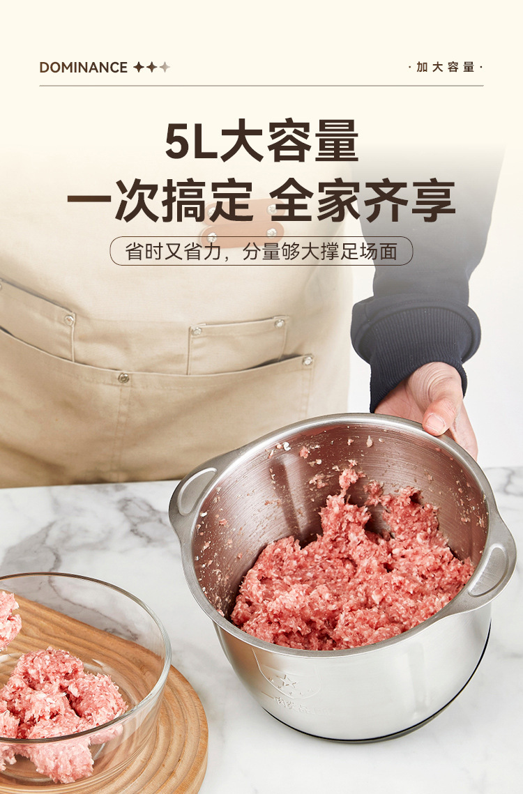 家用电动5L大容量不锈钢绞肉机绞馅机料理机静音