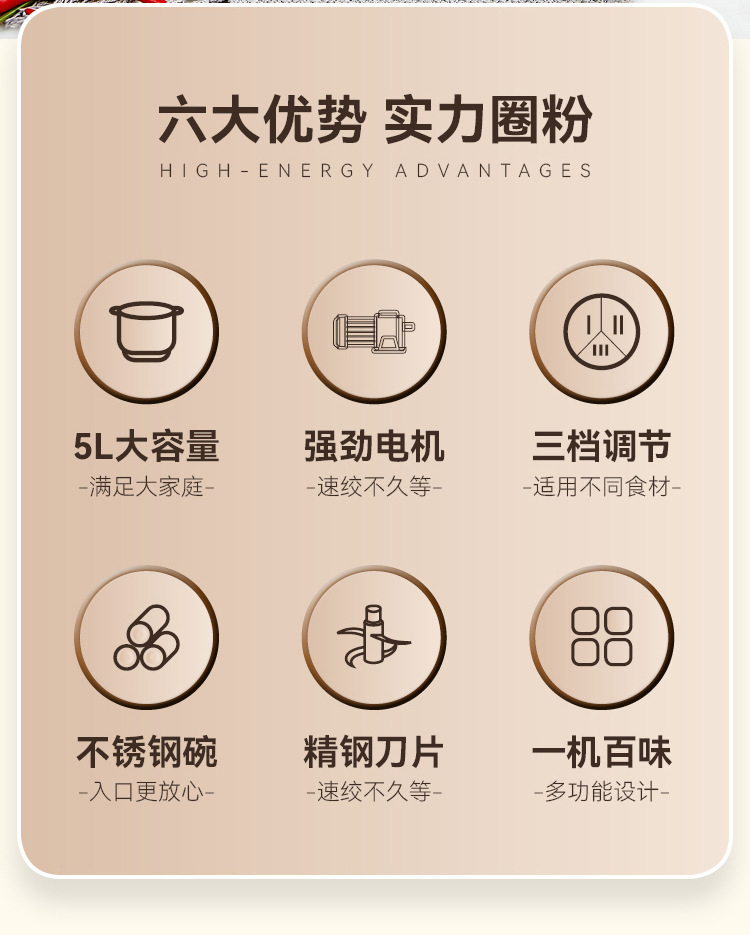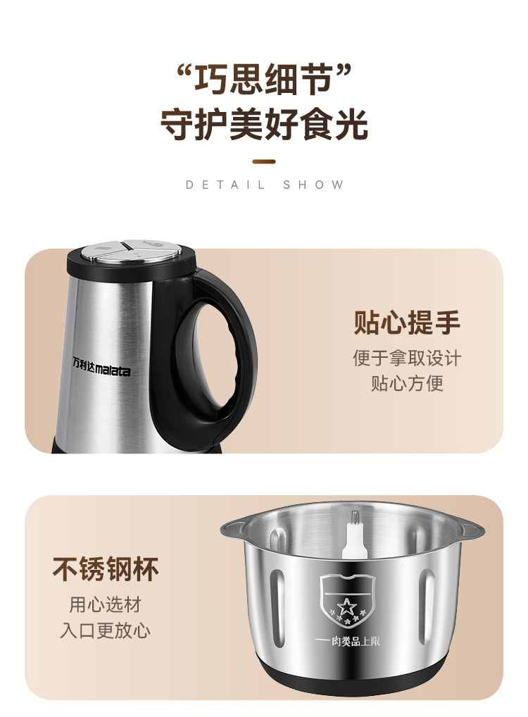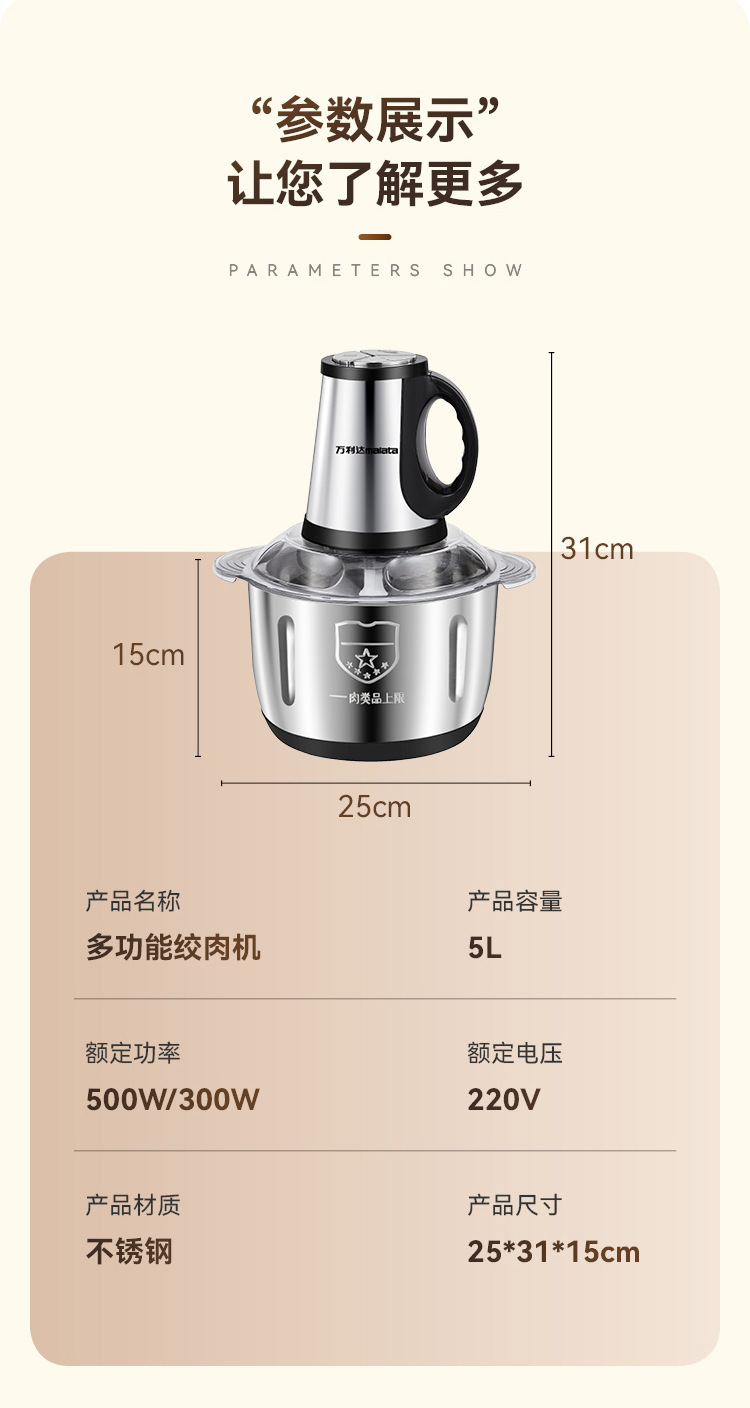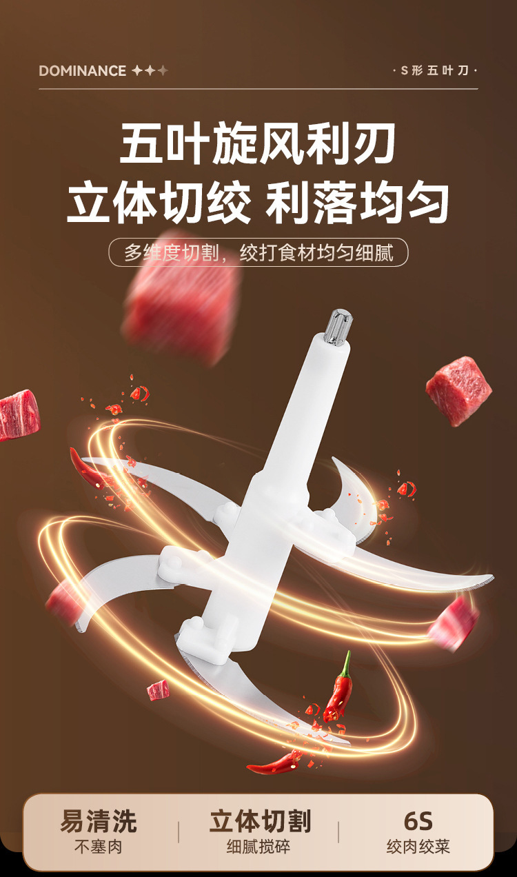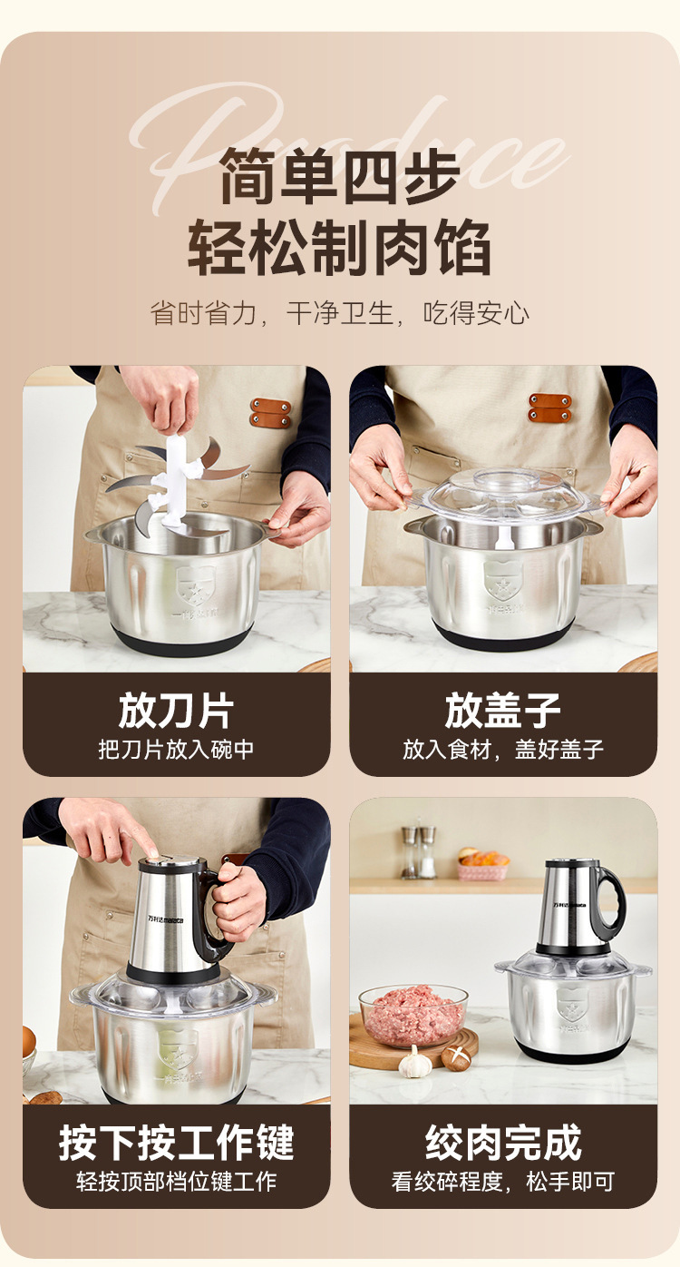 家用电动5L大容量不锈钢绞肉机绞馅机料理机静音