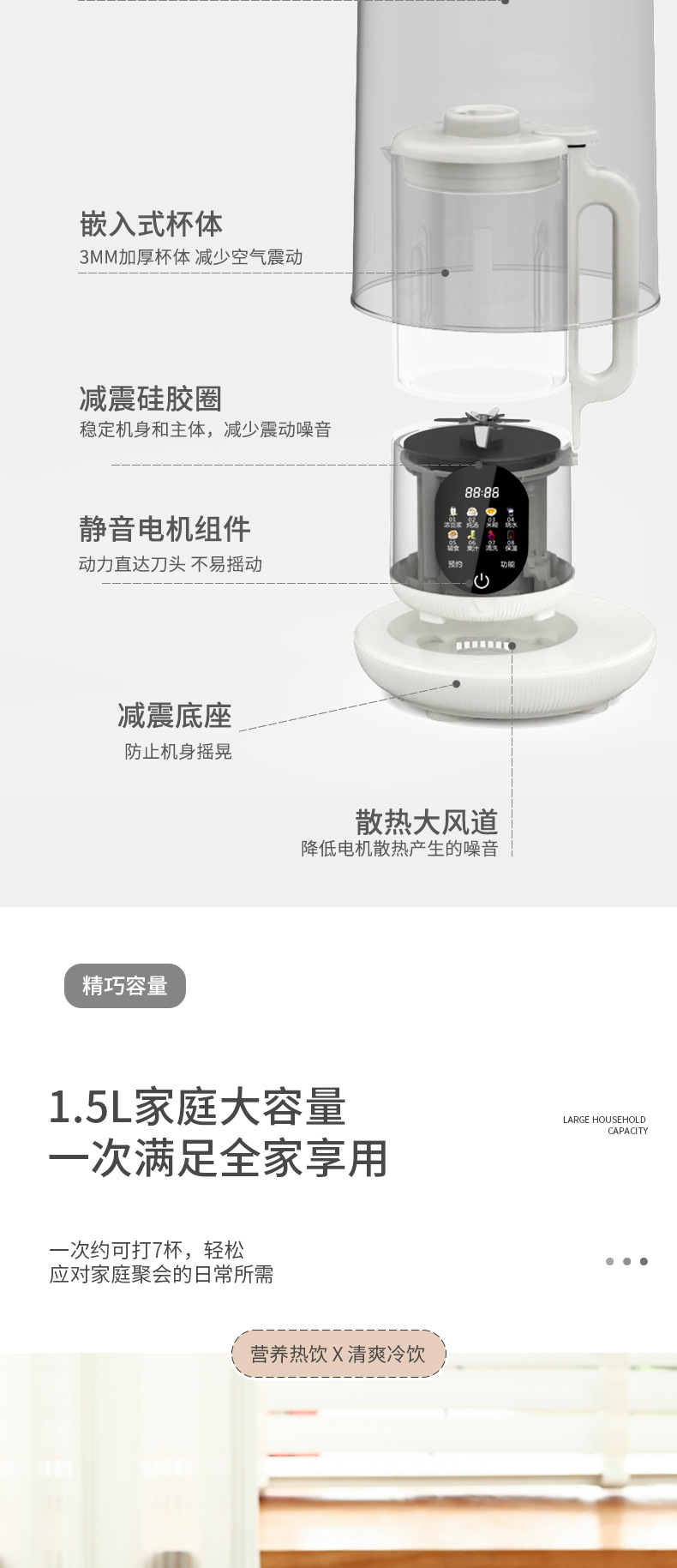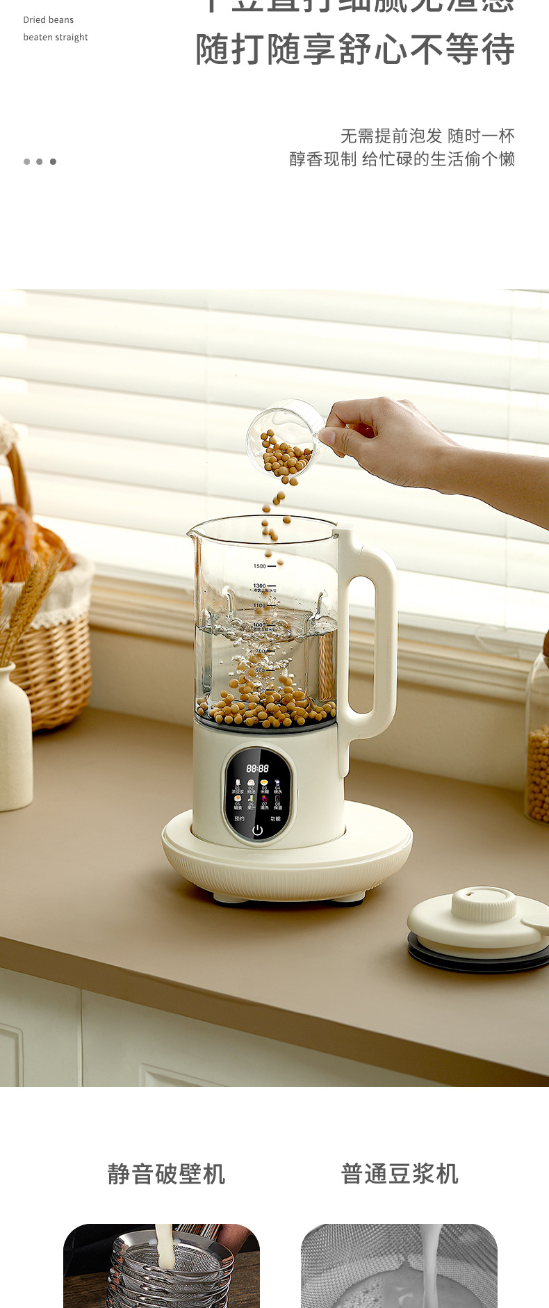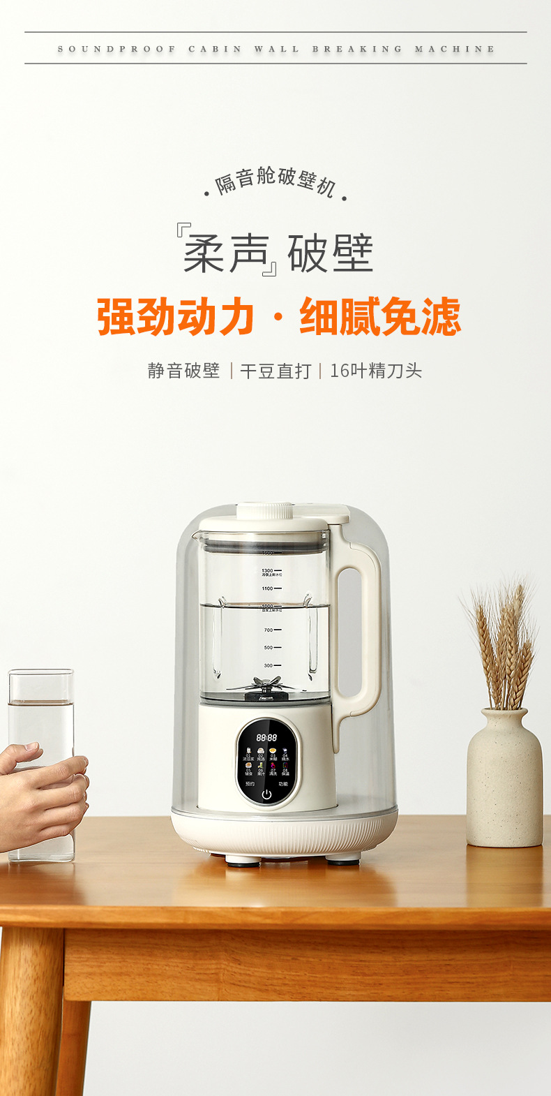 智能柔音加热破壁老人家用豆浆机隔音罩触屏研磨无渣多功能料理