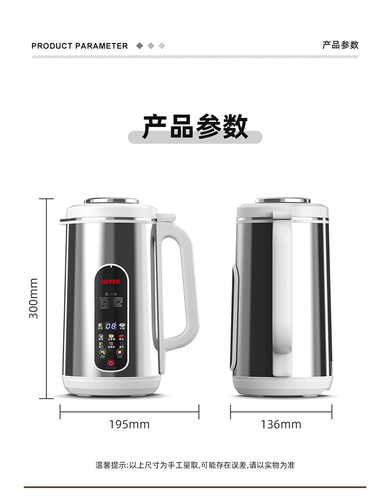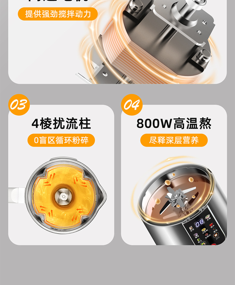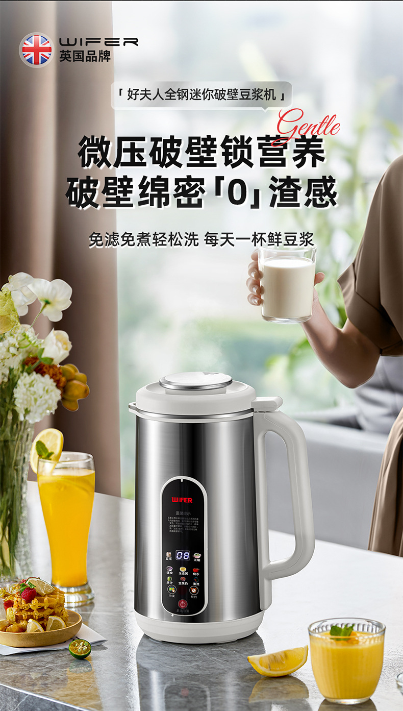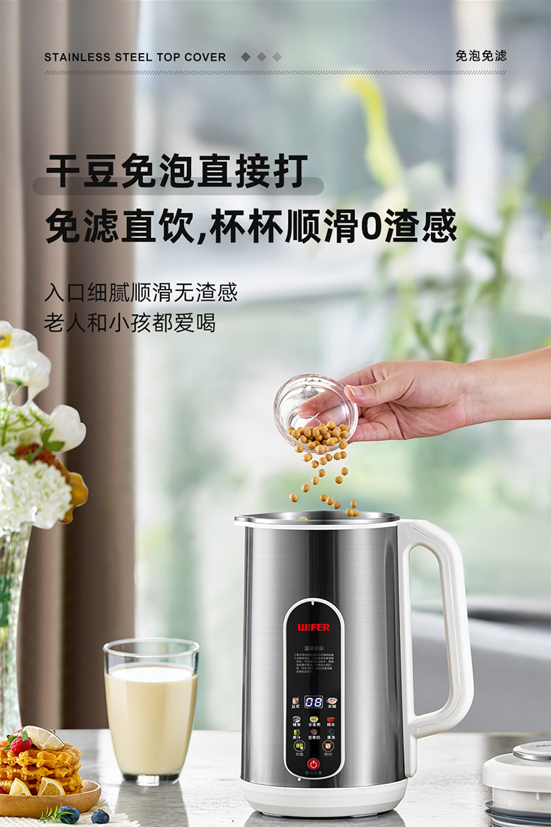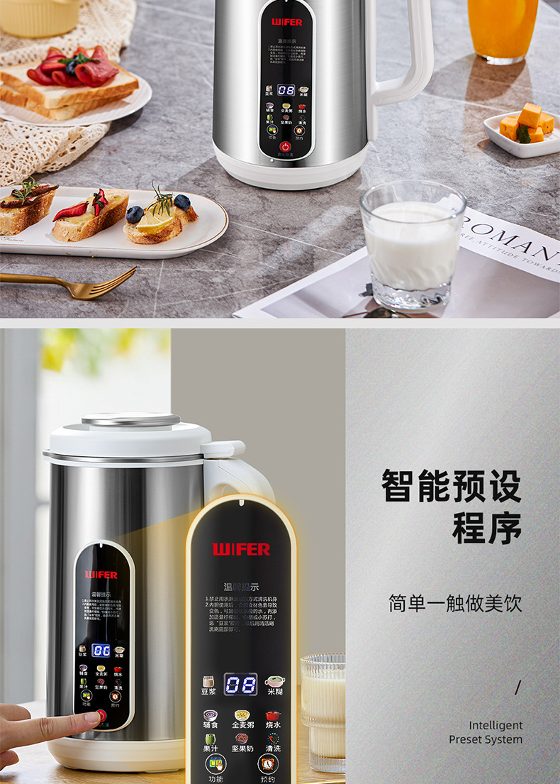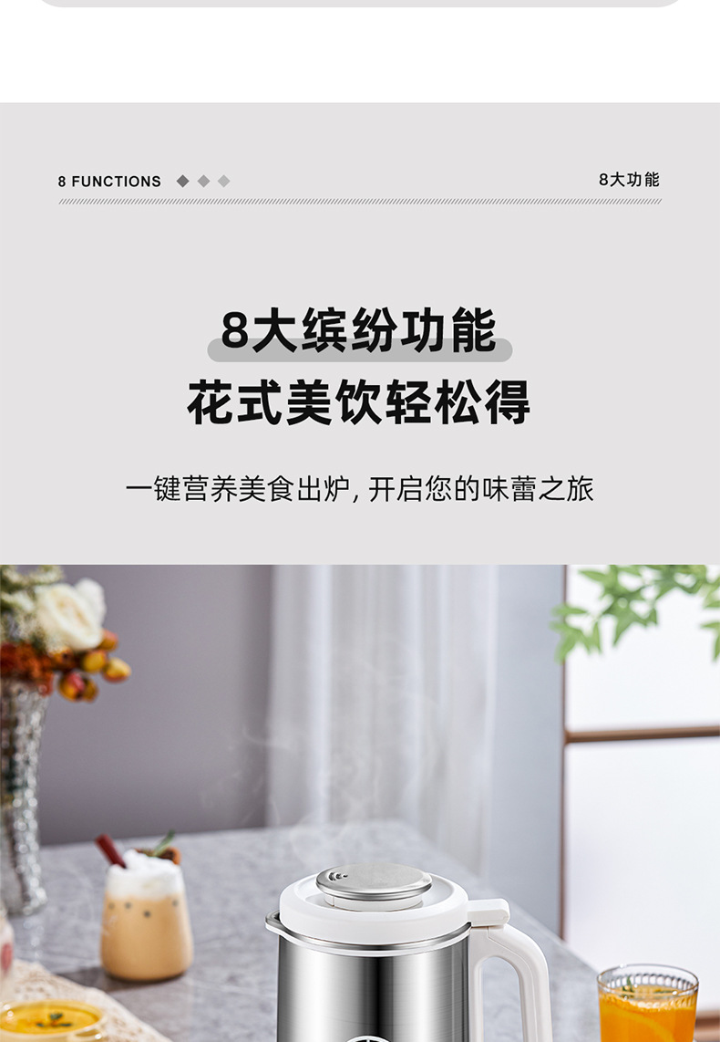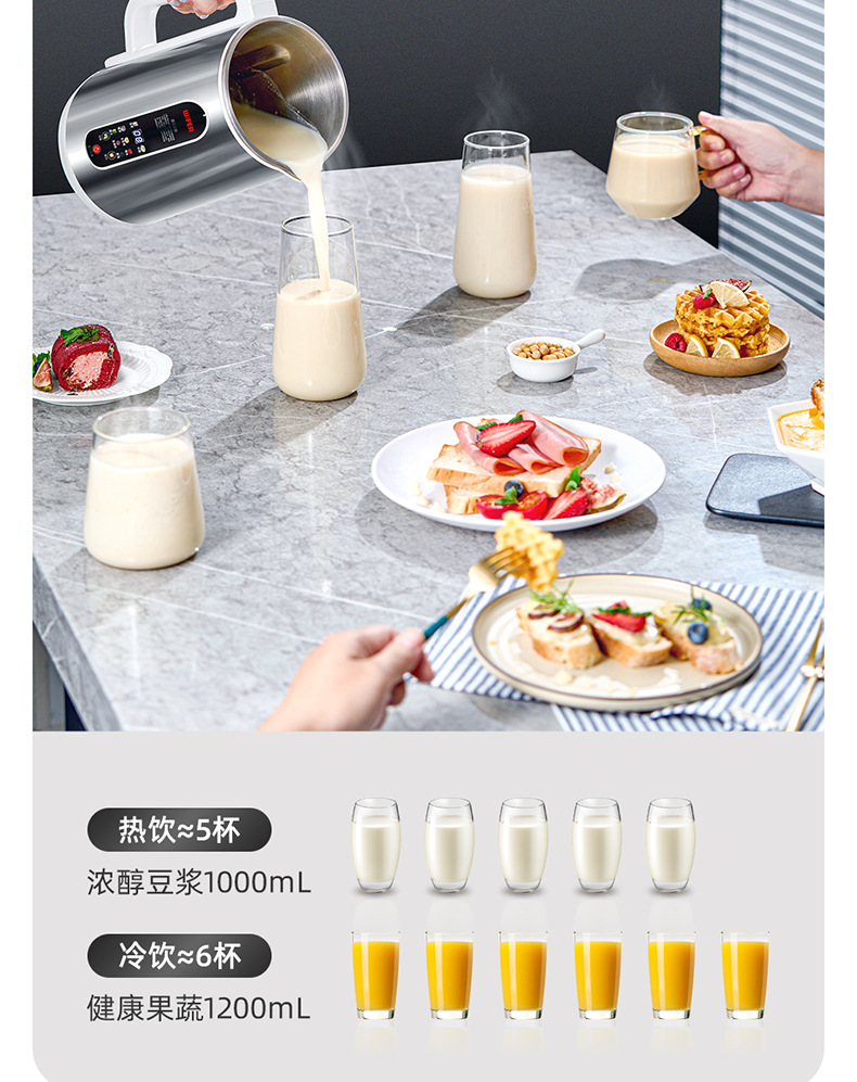 不锈钢多功能大容量家用豆浆机破壁机预约保温免泡辅食欧美规