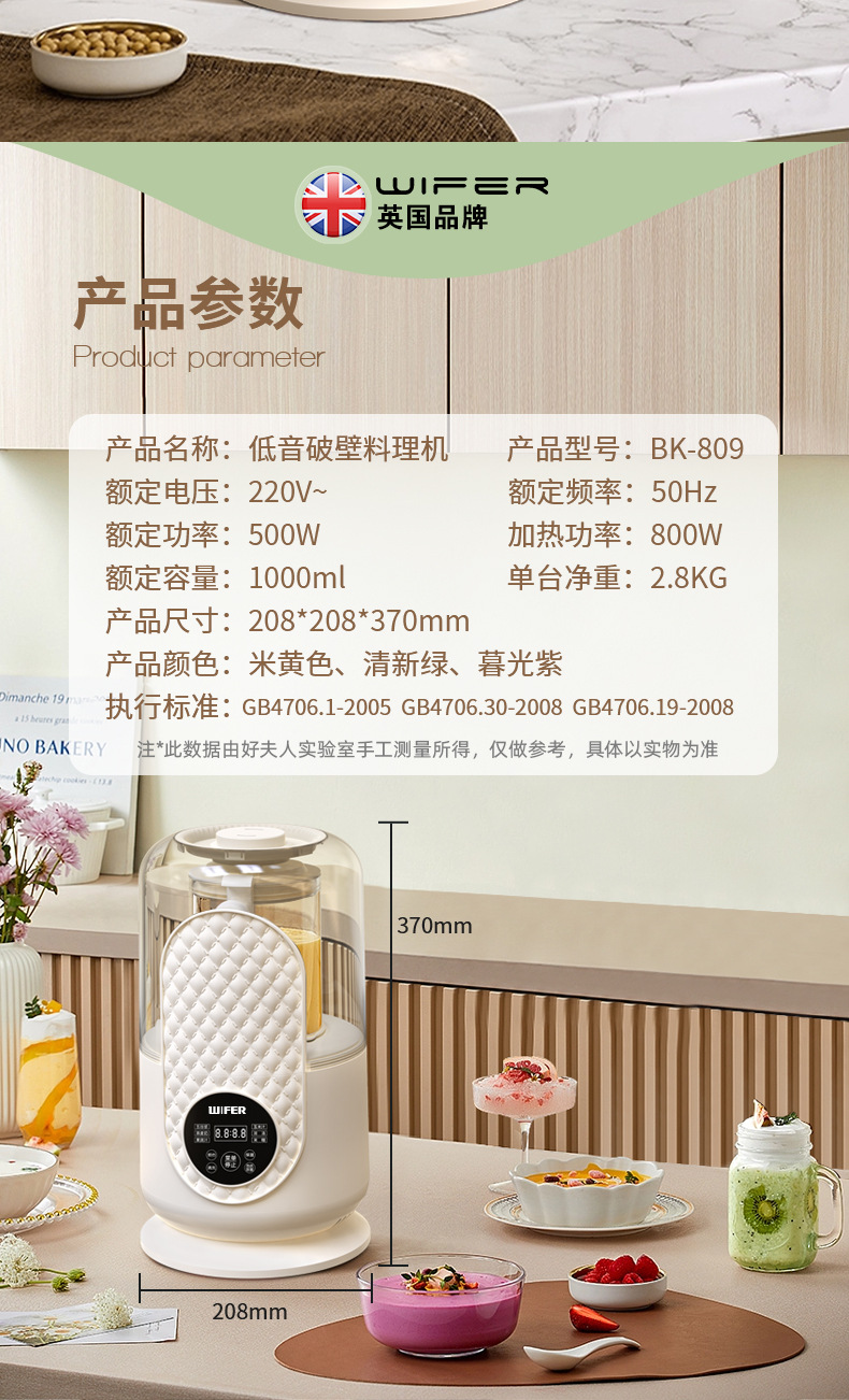 隔音罩轻低音破壁机智能全自动加热免过滤豆浆机多功能料理辅食机