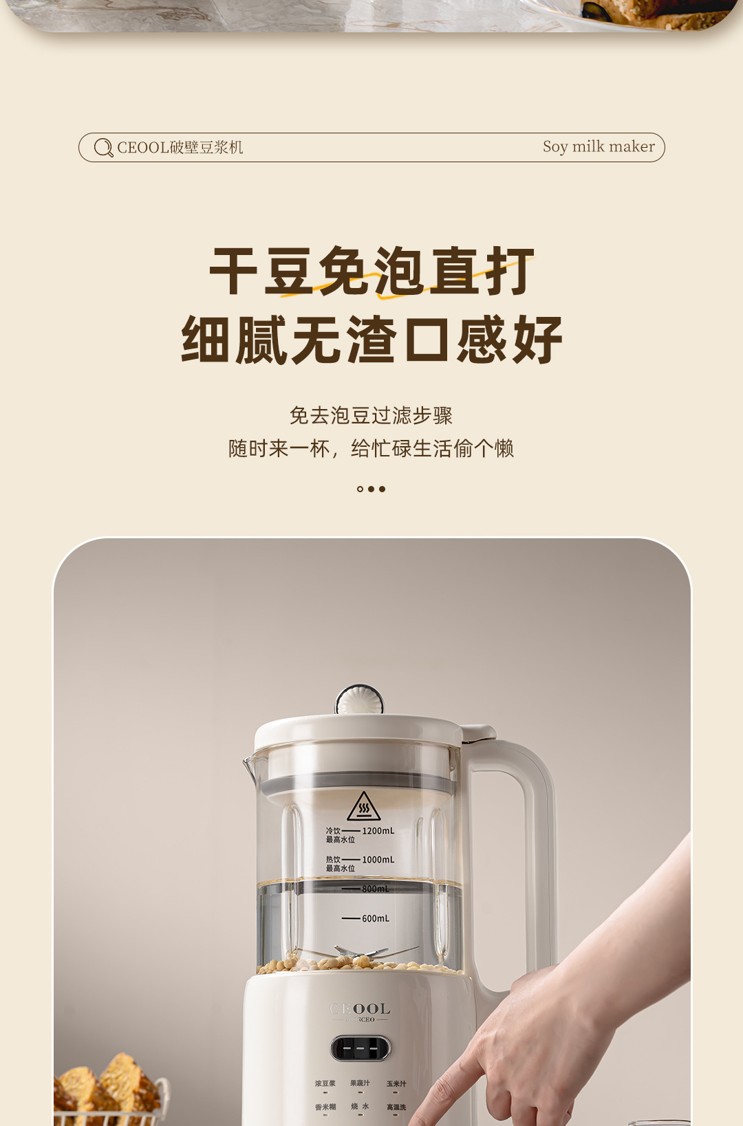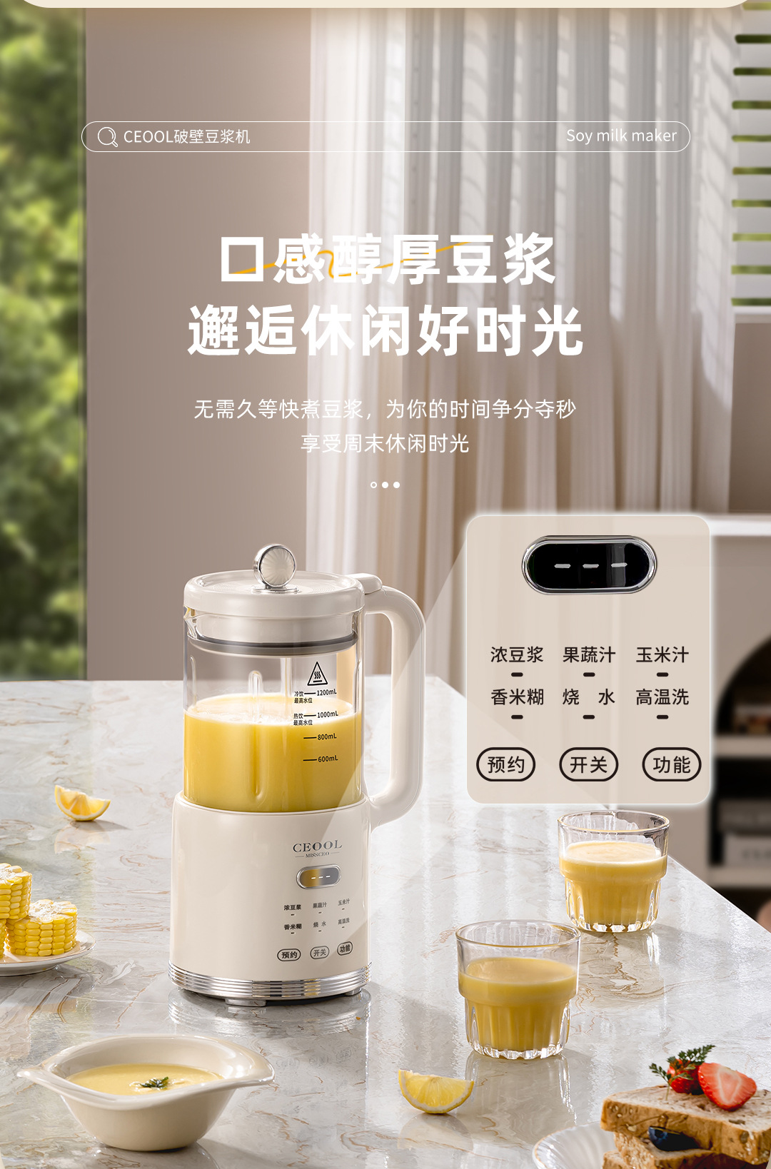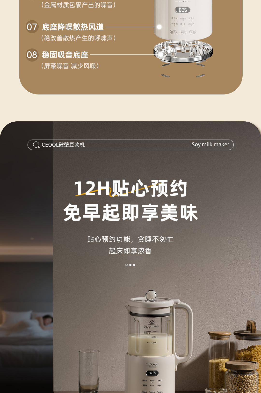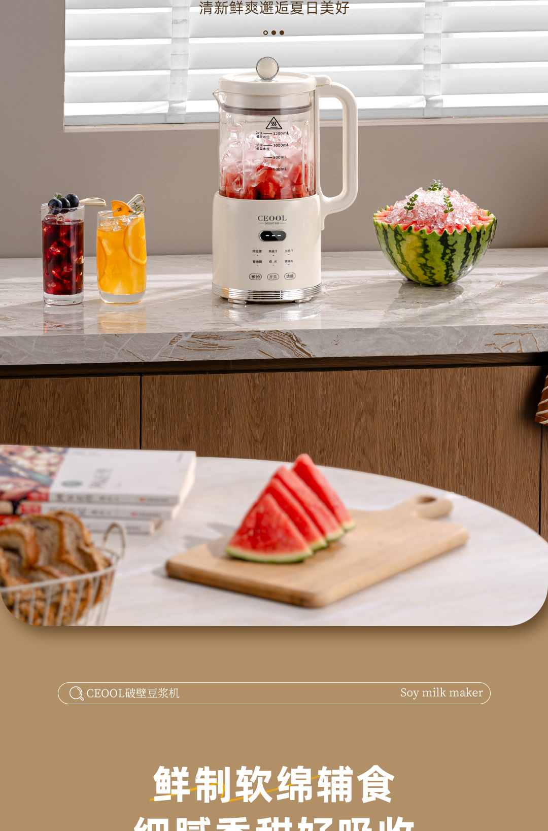 CEOOL豆浆机全自动3-5人家用静音辅食料理机免煮过滤多功能破壁机