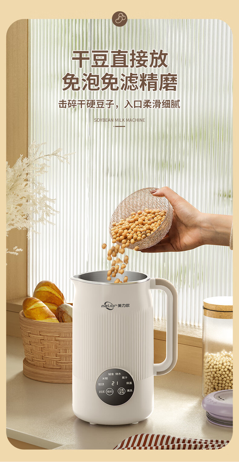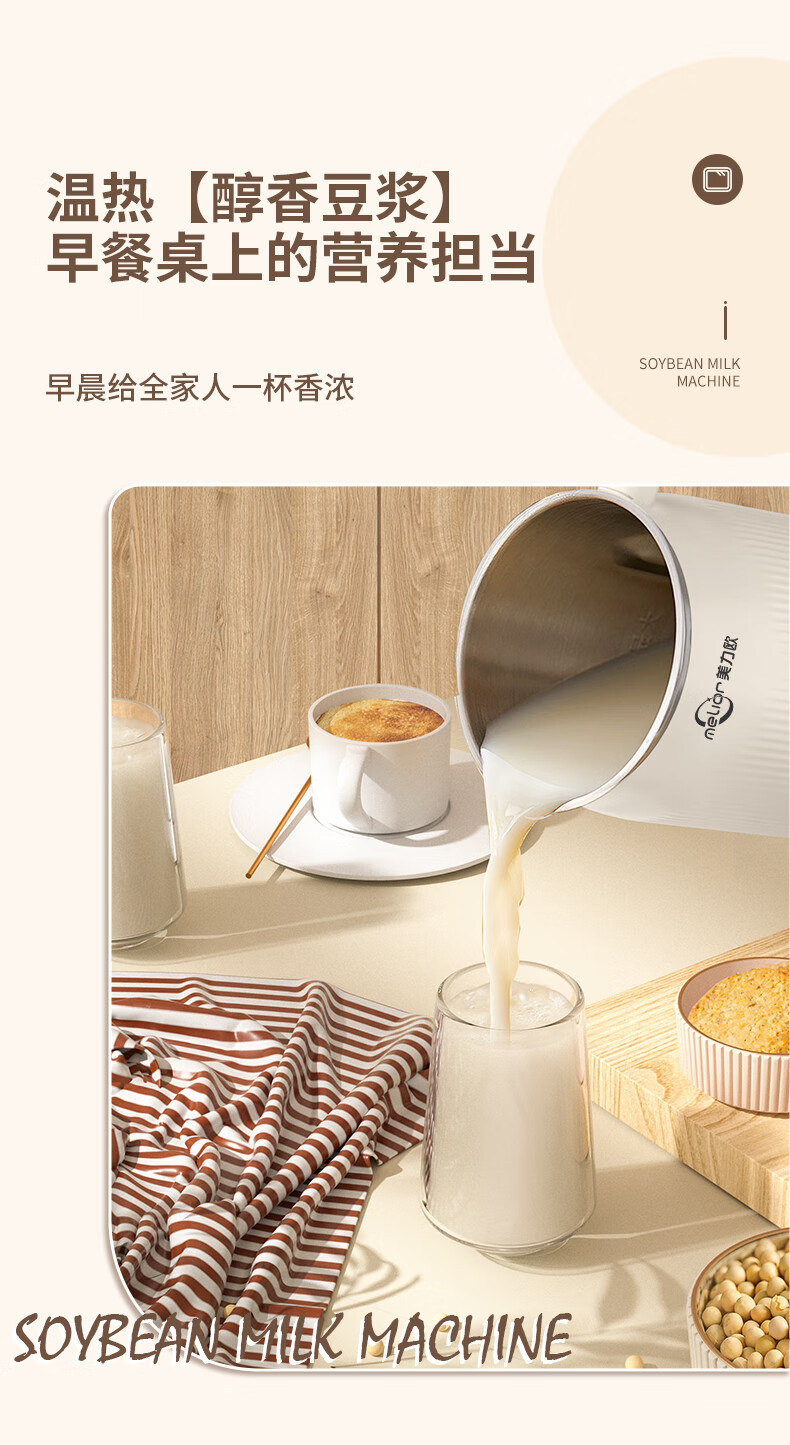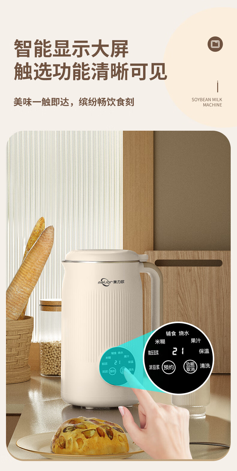 豆浆机1.5L家用大容量2-3智能多功能全自动免滤小型破壁机