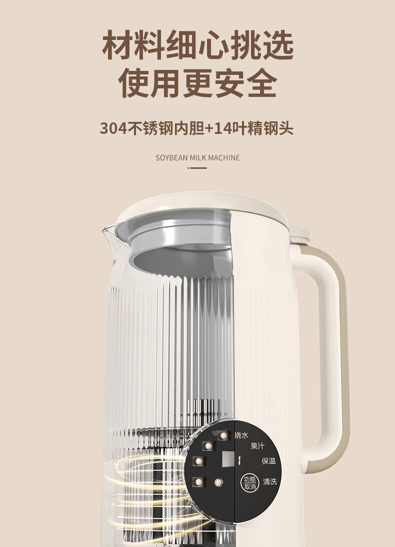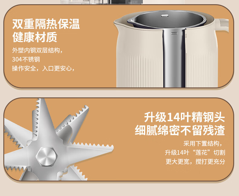 不锈钢多功能大容量家用豆浆机破壁机预约保温免泡辅食料理机