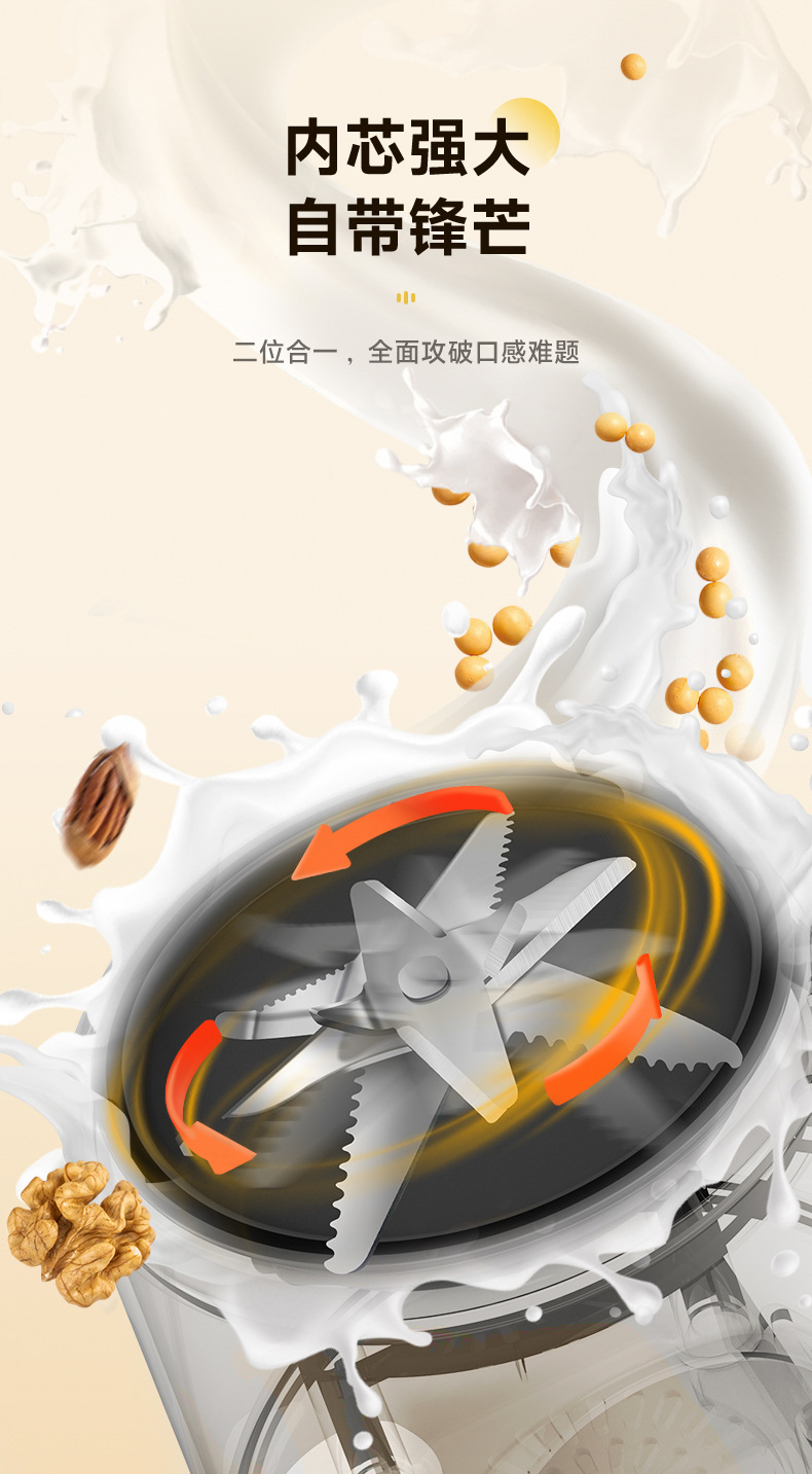新款破壁机镀钛不粘锅防糊底3-5人免泡免过滤家用豆浆机