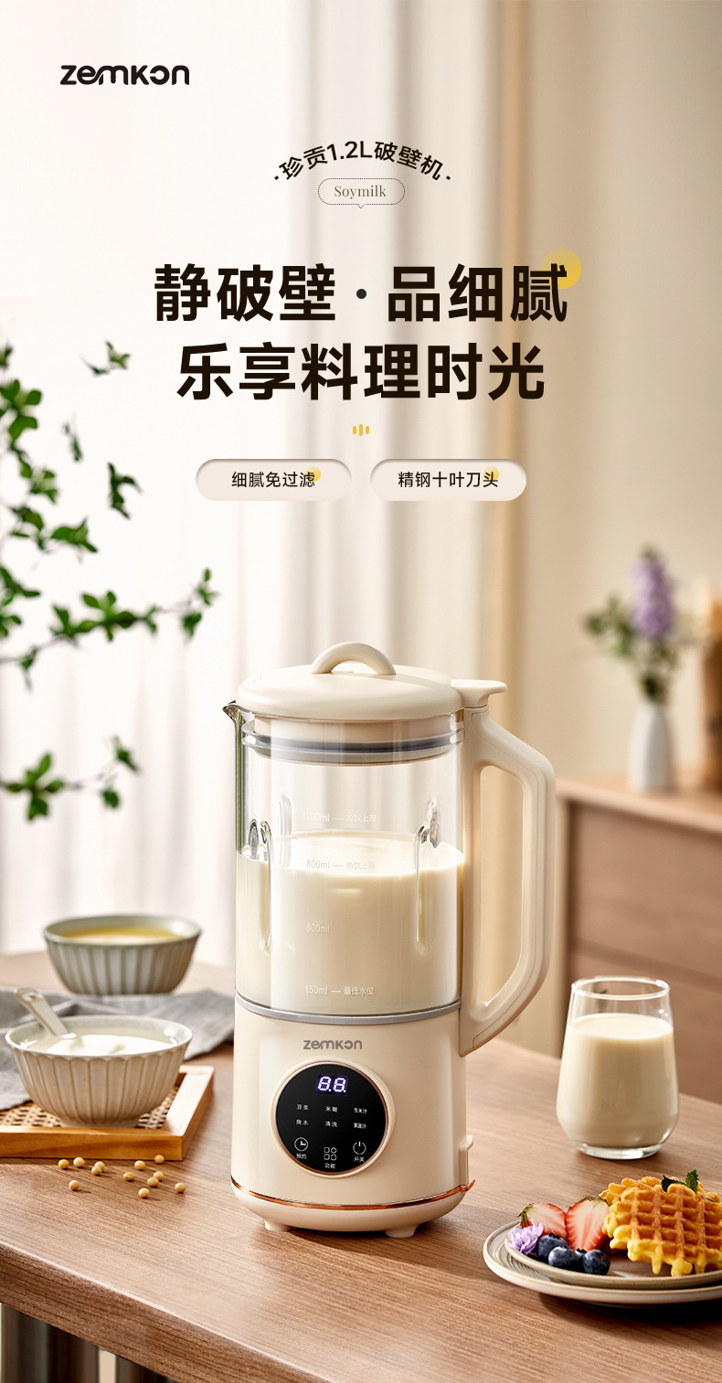 家用豆浆机小型静音全自动破壁机3-5人多功能免煮辅食料理机