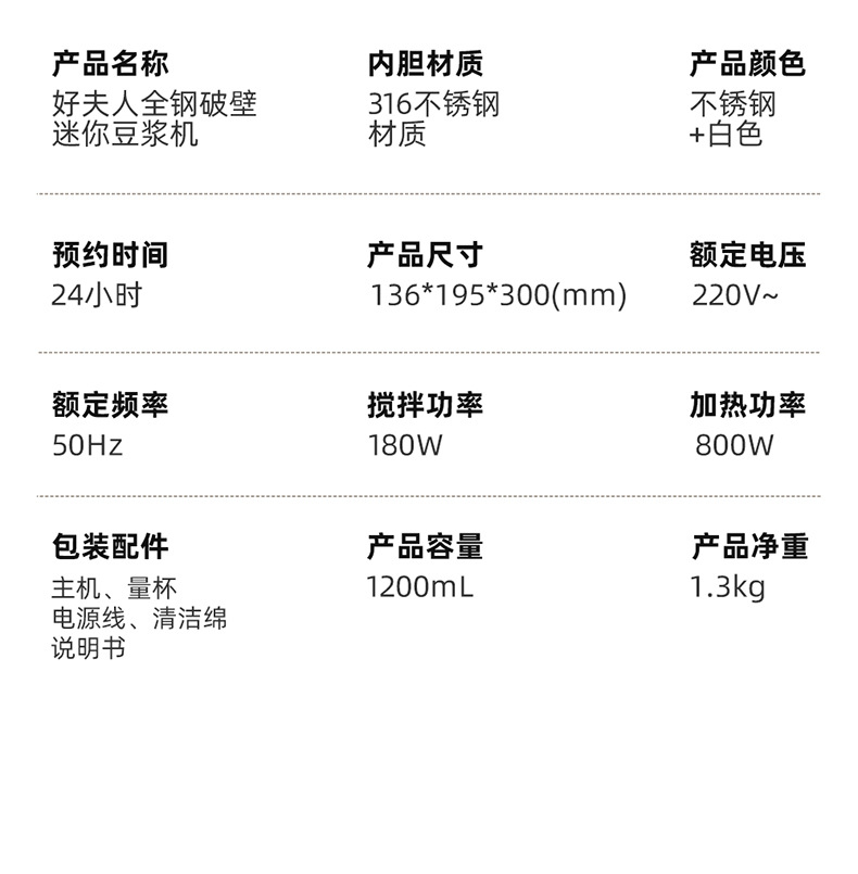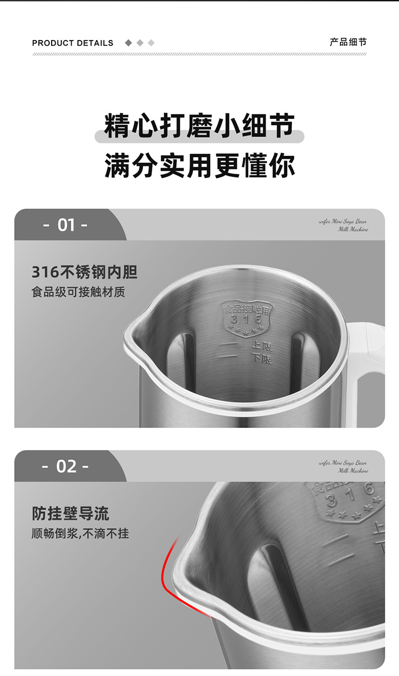 不锈钢豆浆机【316医用级钢胆】1200ml