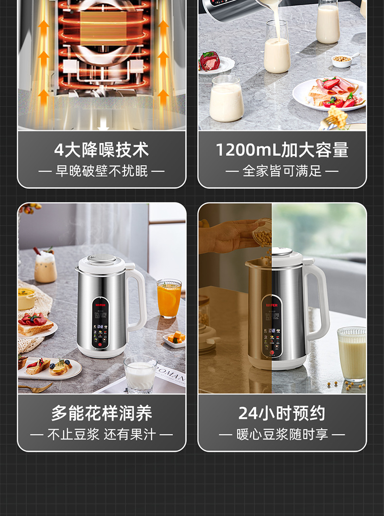 不锈钢豆浆机【304食品级内胆】1200ml