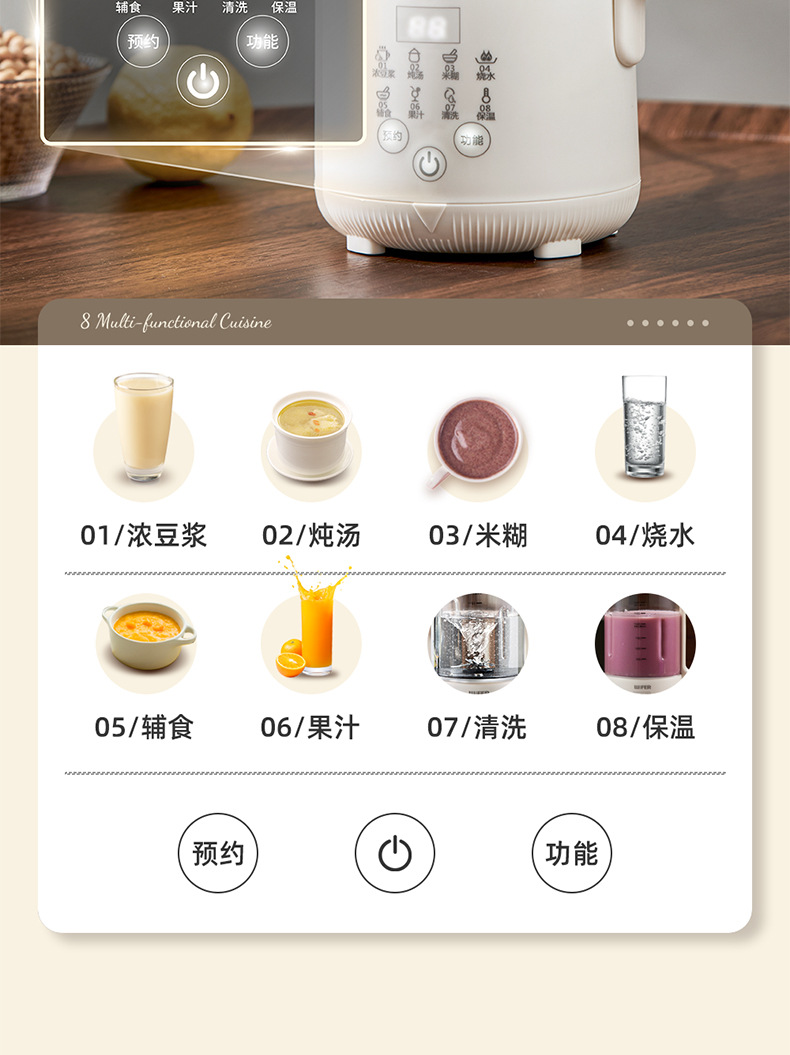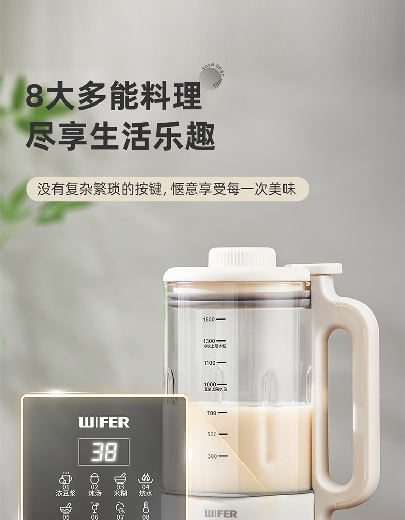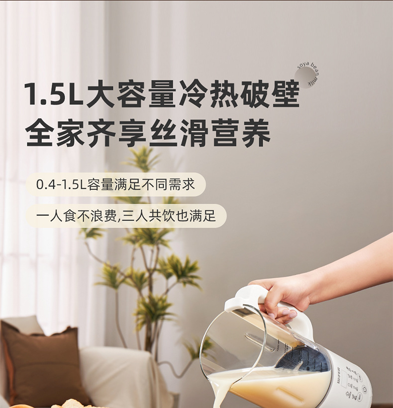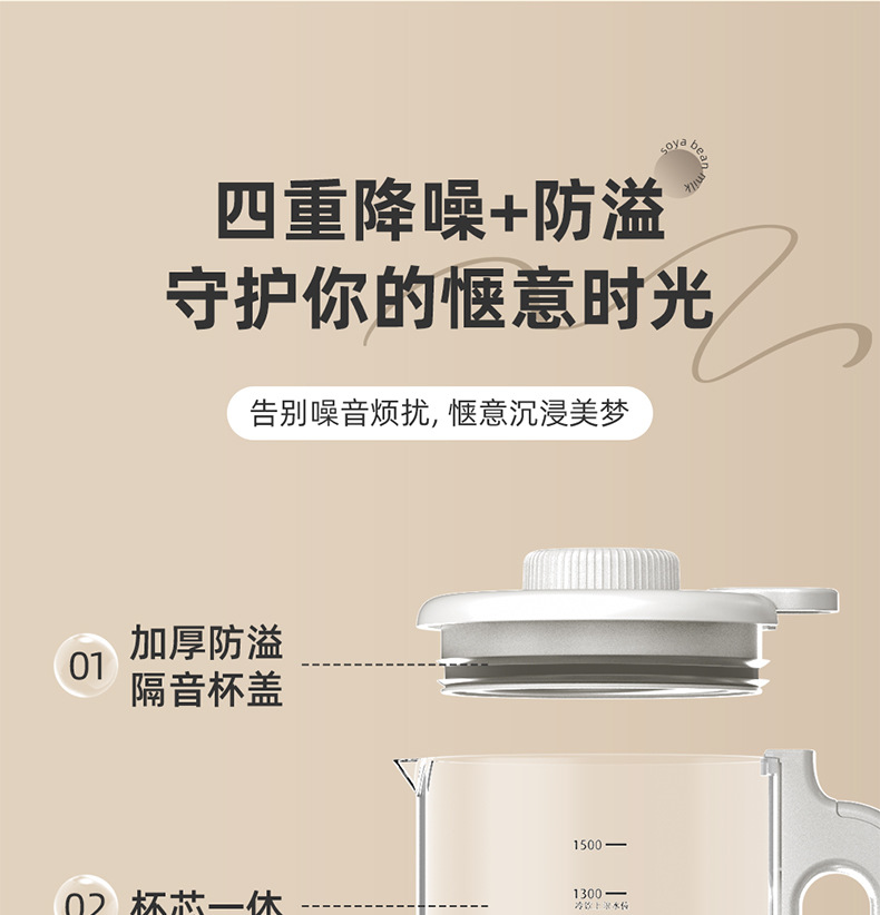 柔音加热破壁老人家用豆浆机辅食机鱼汤触屏研磨免过滤多功能