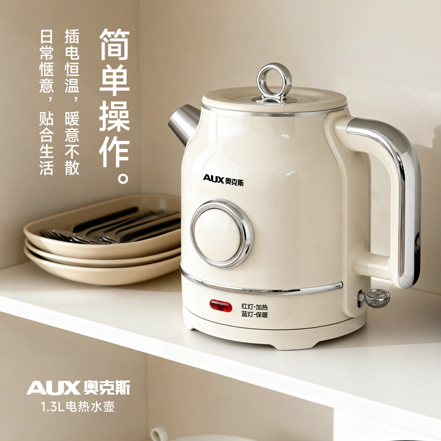 AUX奥克斯复古电热水壶家用烧水壶一体全自动保温双层开水恒温壶