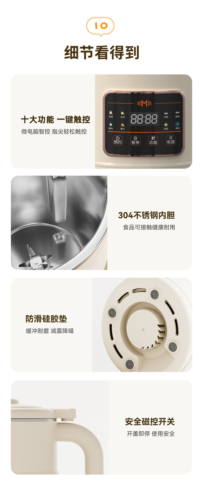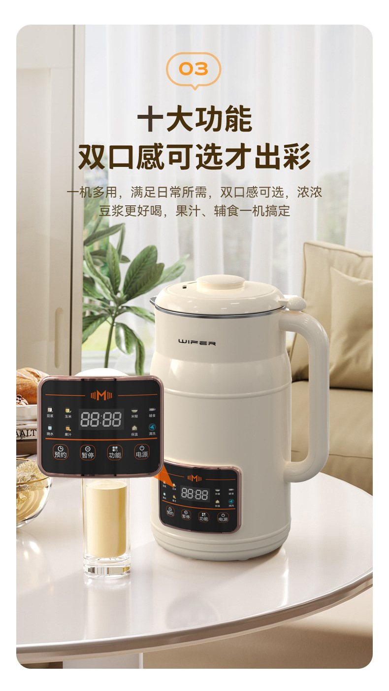 豆浆机破壁机家用静音无渣免煮全自动多功能料理机大容量3-5人