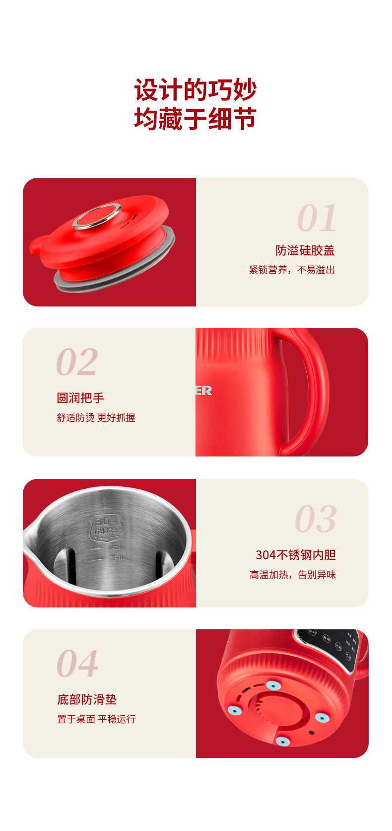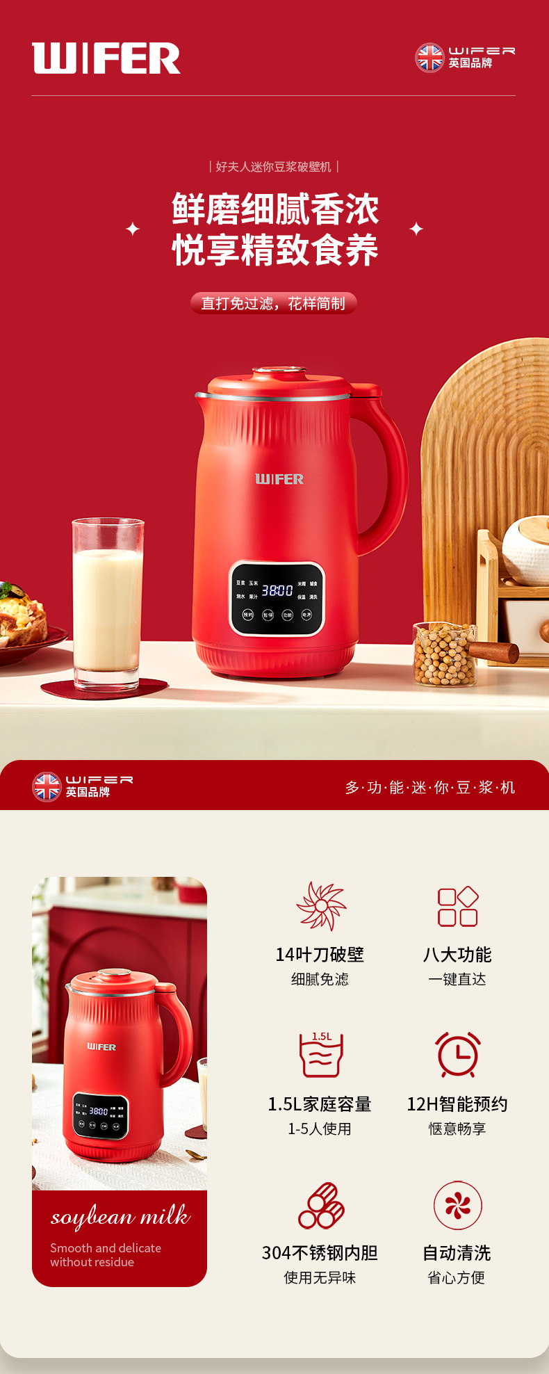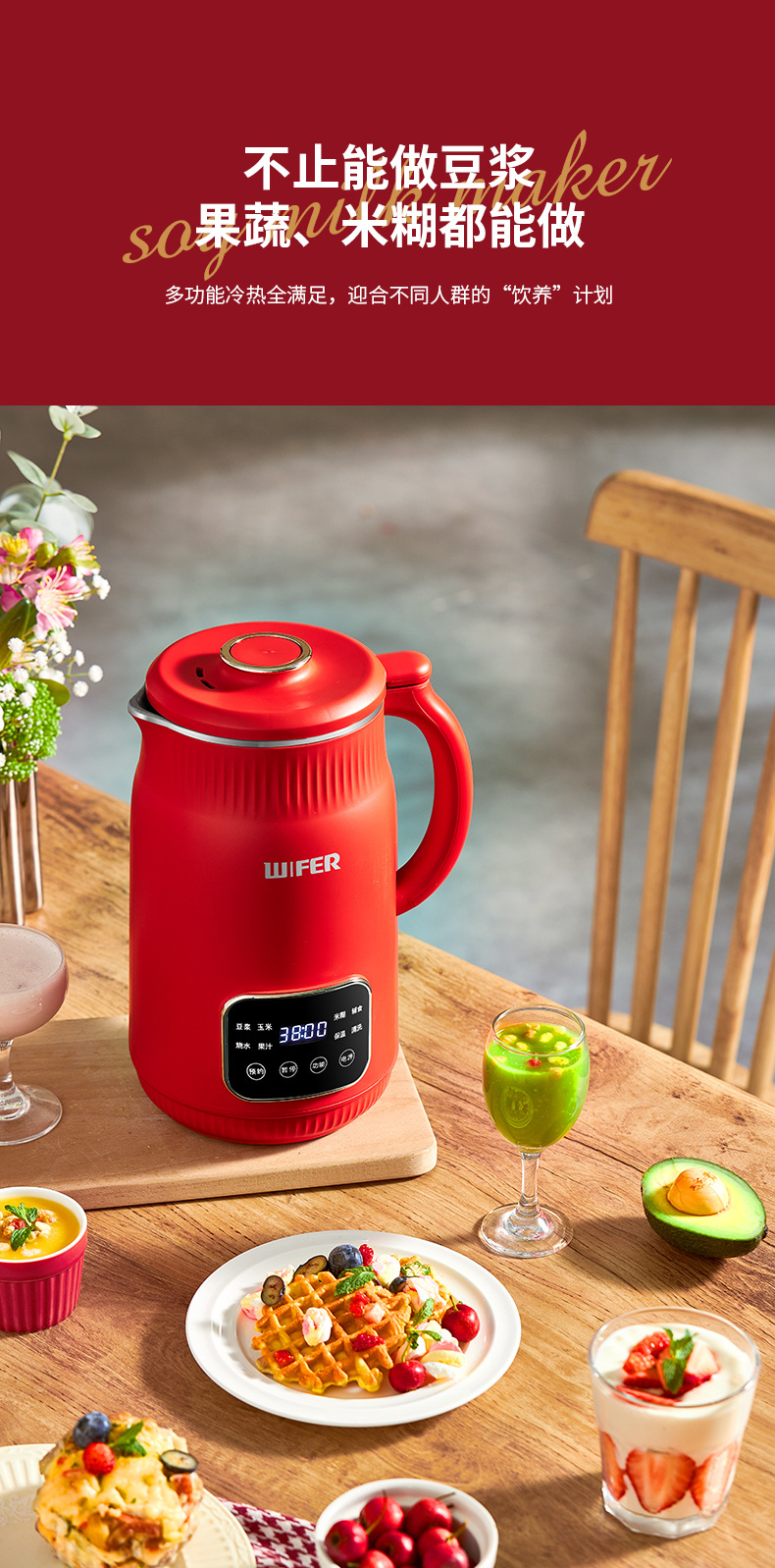 限量款红色豆浆机1800ml【304内胆】QHD-009E