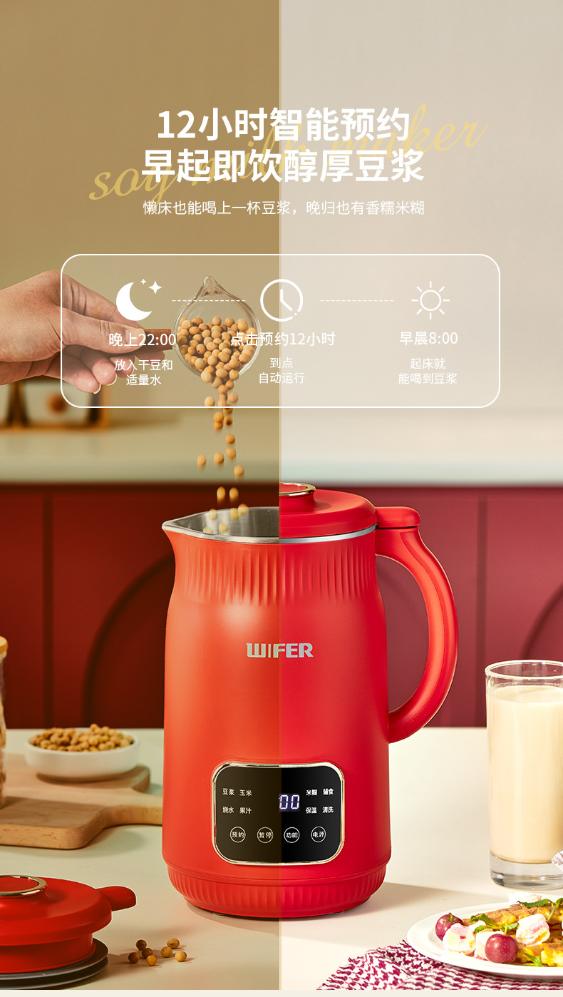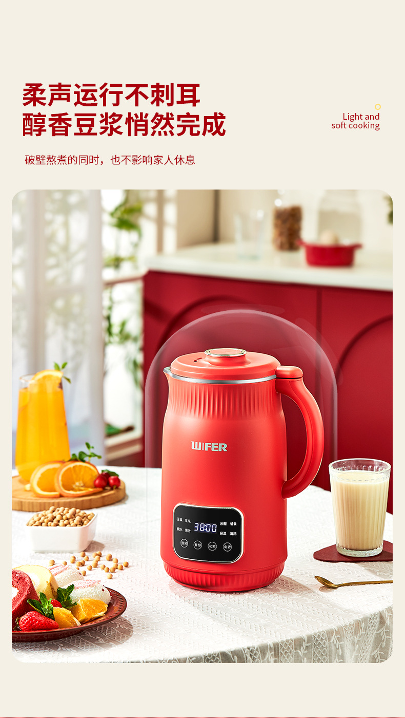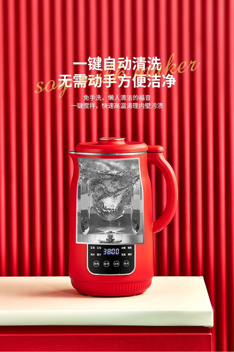 限量款红色豆浆机1800ml【316内胆】QHD-009E
