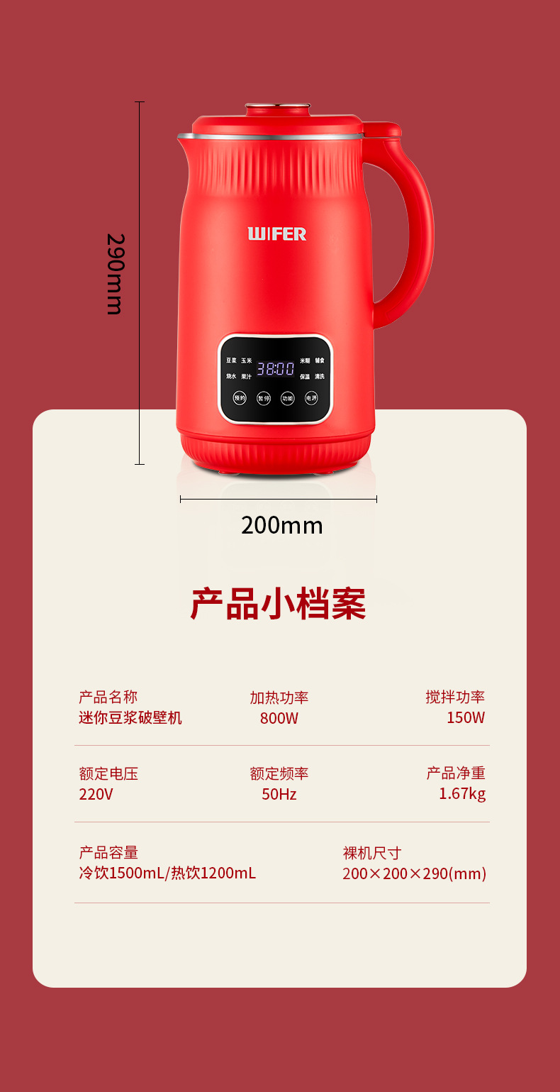 限量款红色豆浆机1500ml【304内胆】QHD-009B