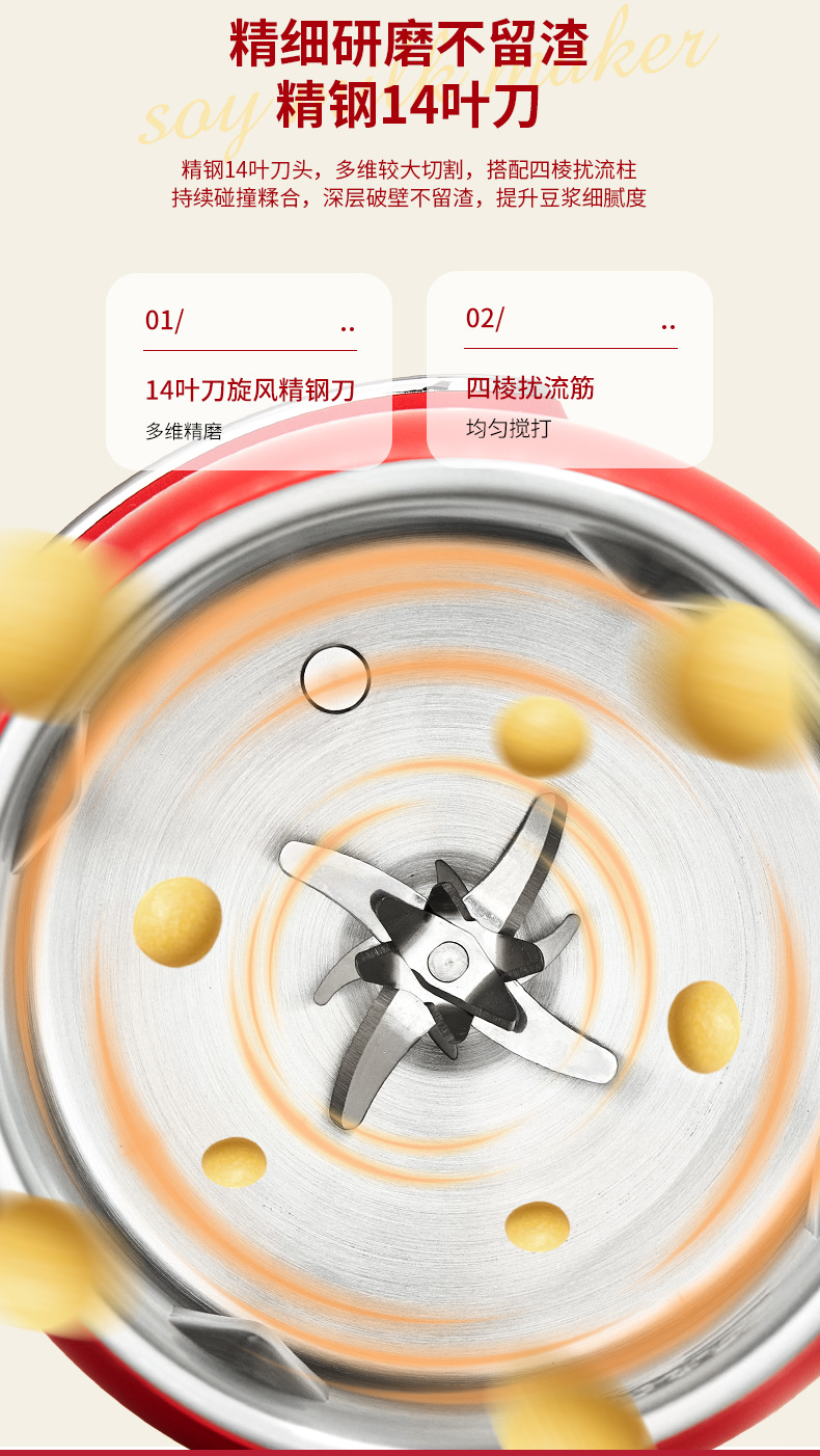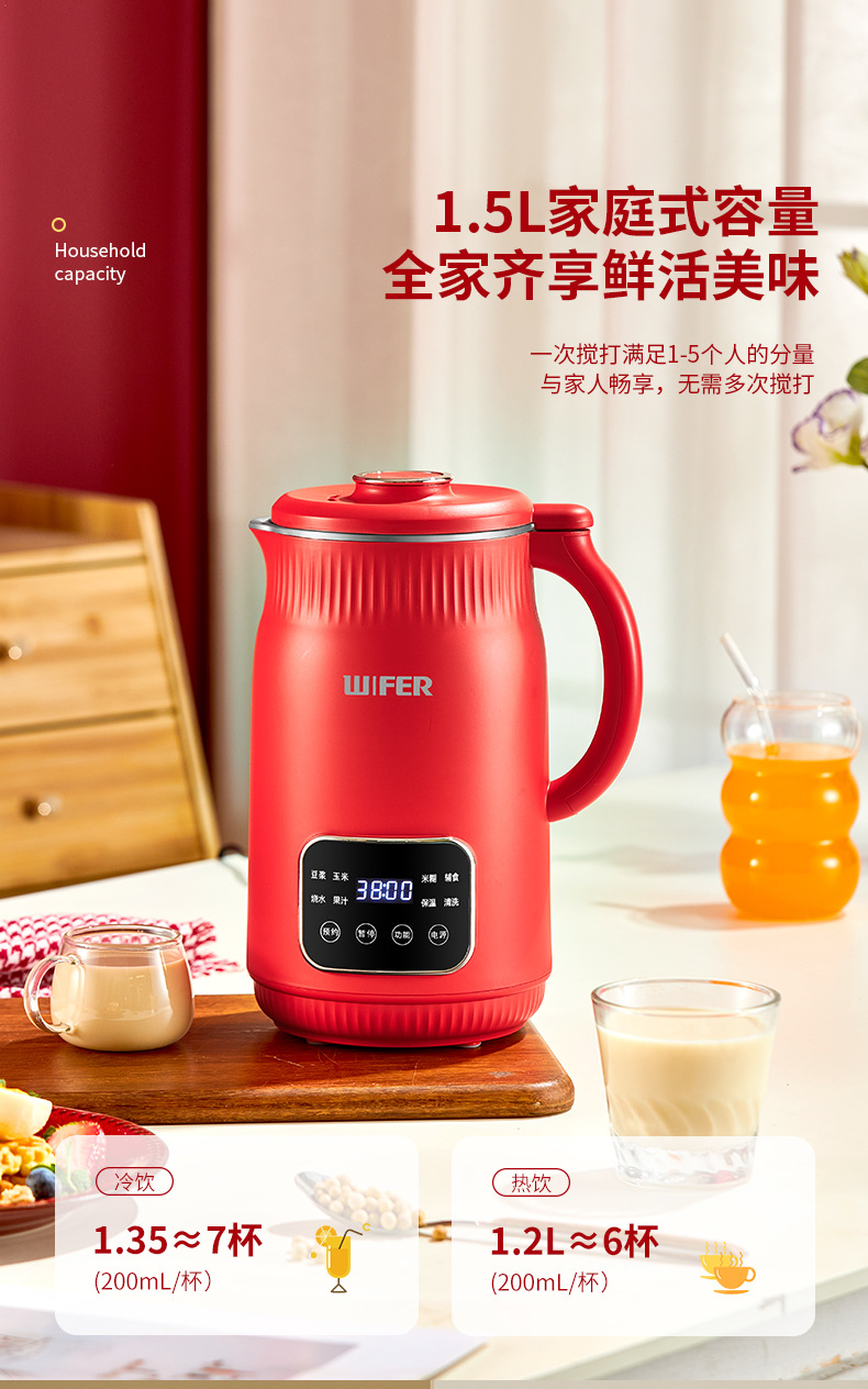 限量款红色豆浆机1500ml【316内胆】QHD-009B