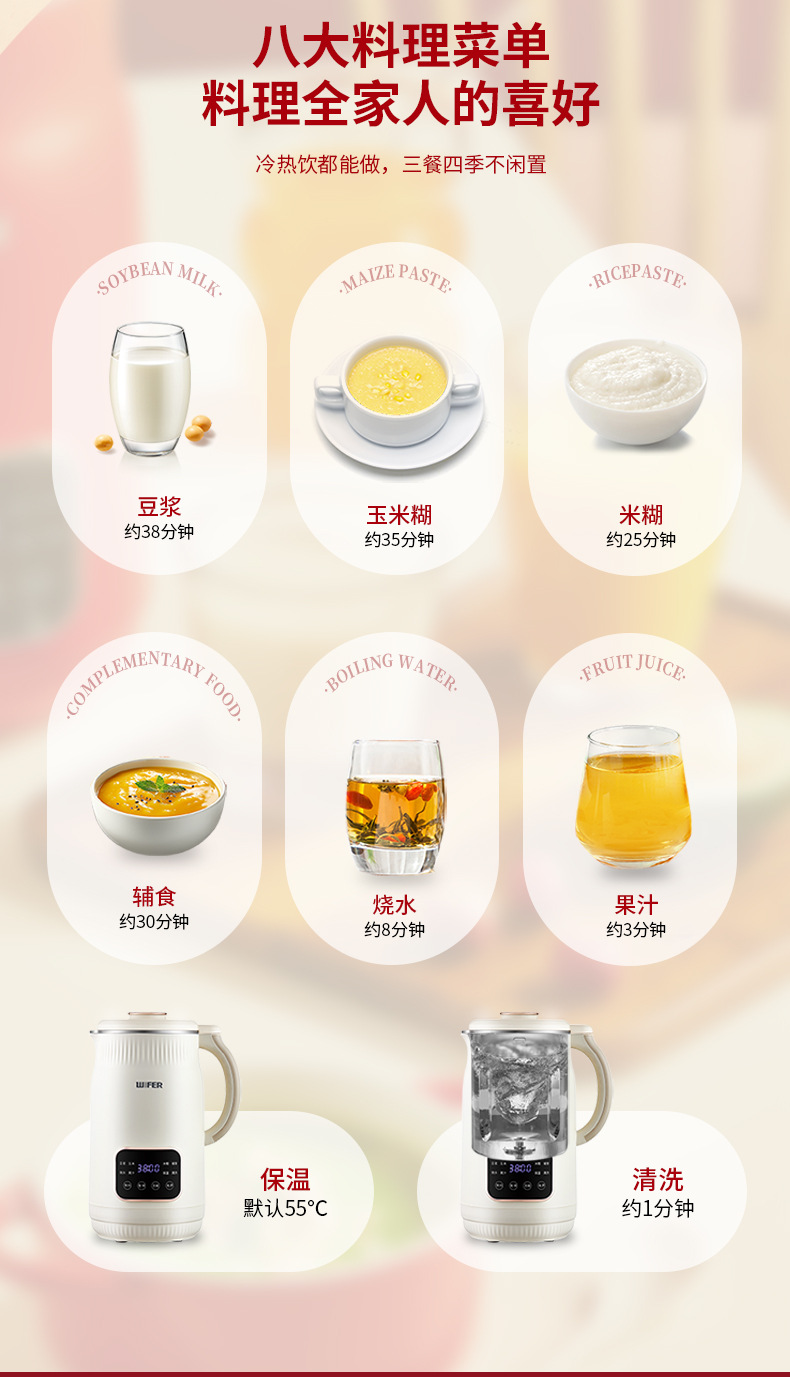 豆浆机小型家用自动破壁机多功能迷你辅食果汁搅拌料理机免煮