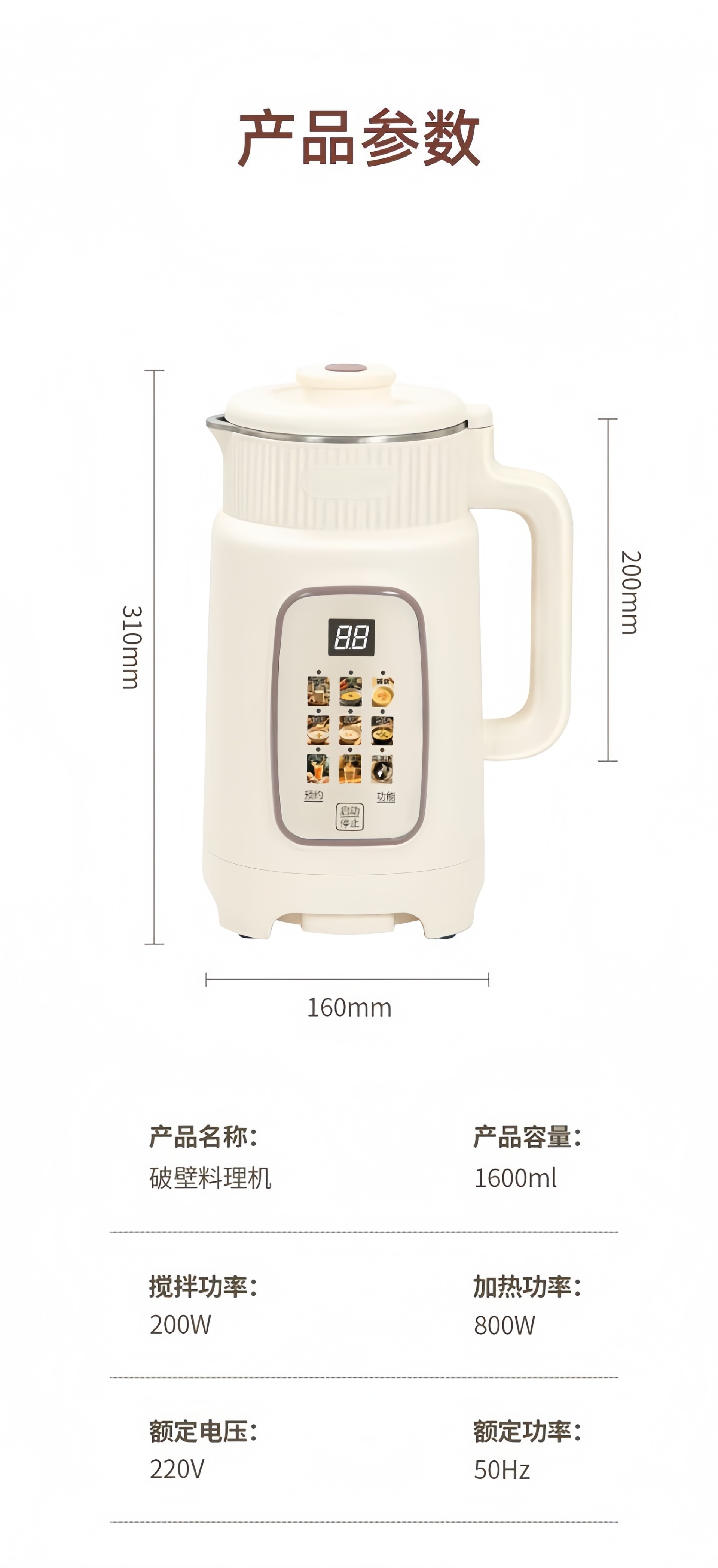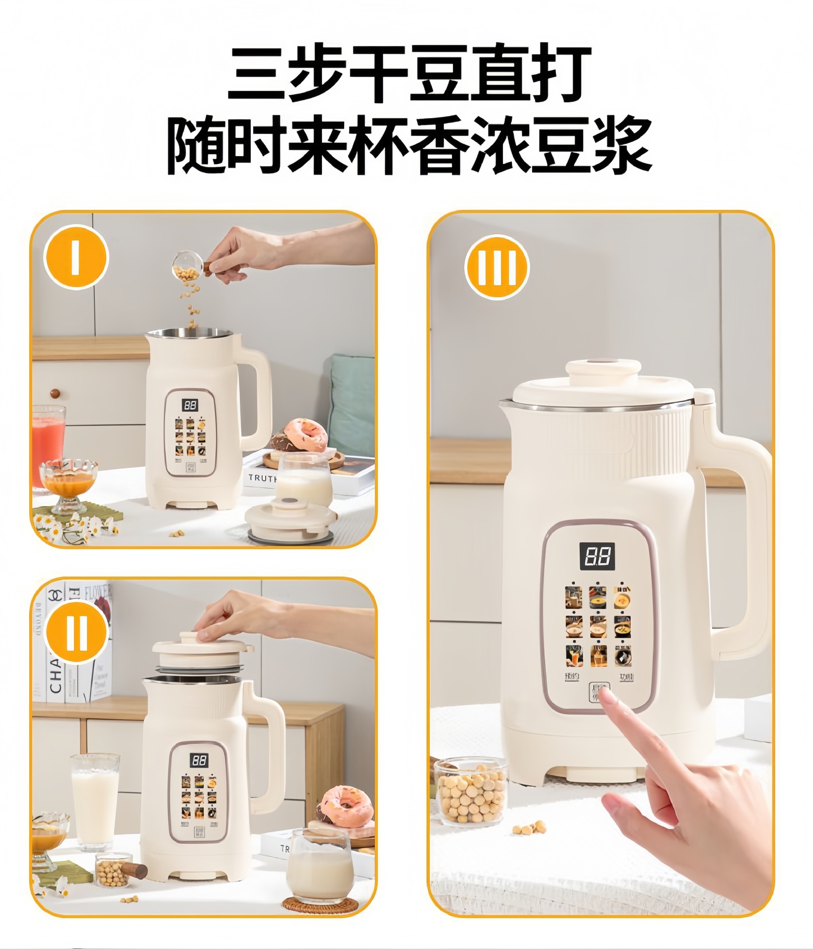 干豆直打破壁机家用豆浆机多功能料理机低音辅食机免滤果汁机