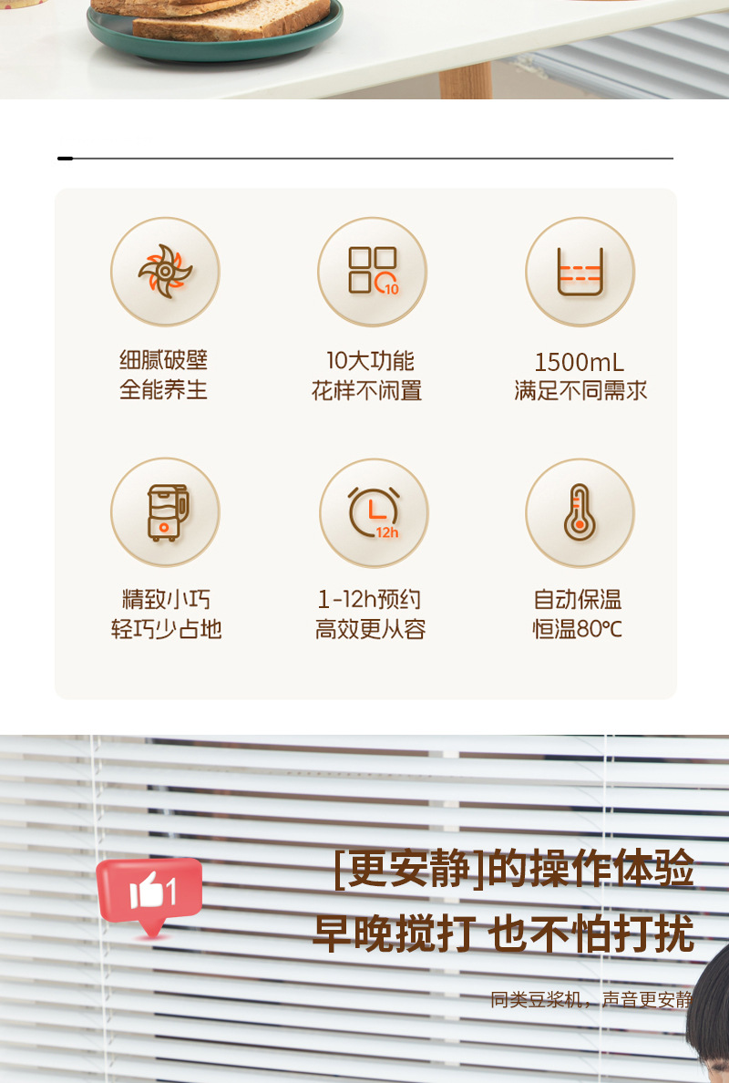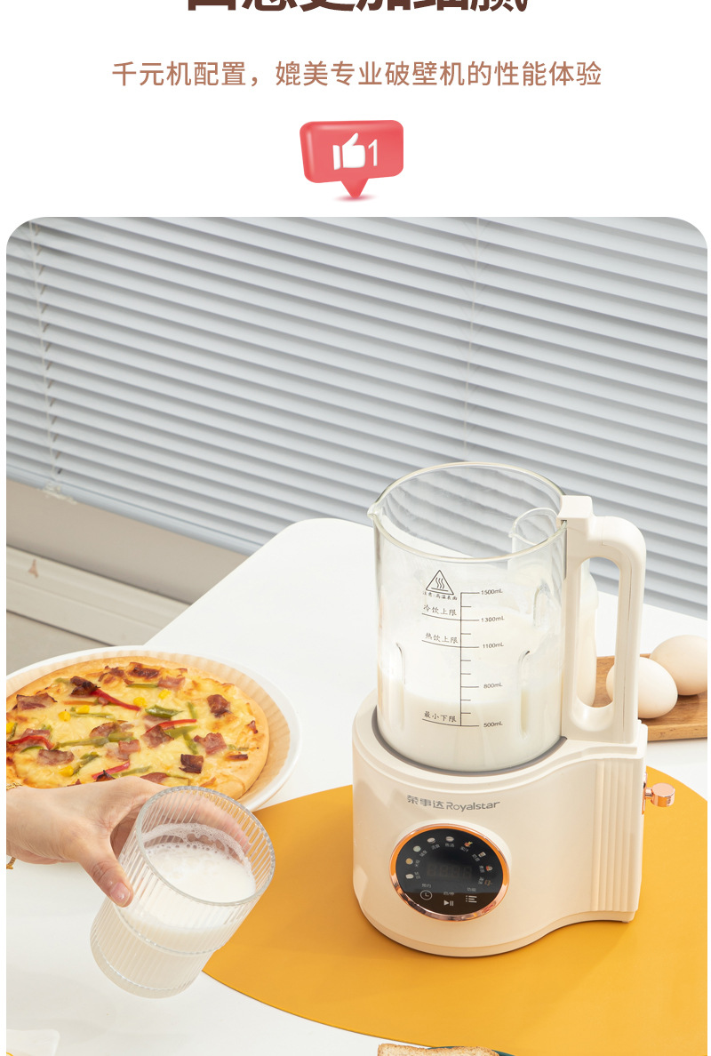 豆浆机1.5L家用大容量2-3智能多功能全自动免滤小型破壁机