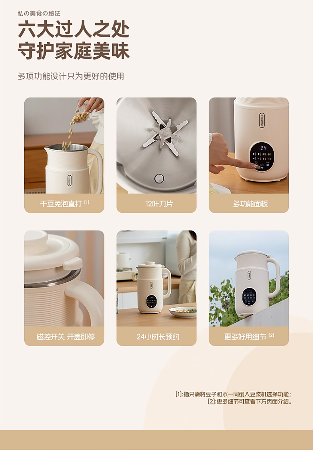 豆浆机3-4人全自动小型家用静音辅食料理机免煮过滤多功能破壁机