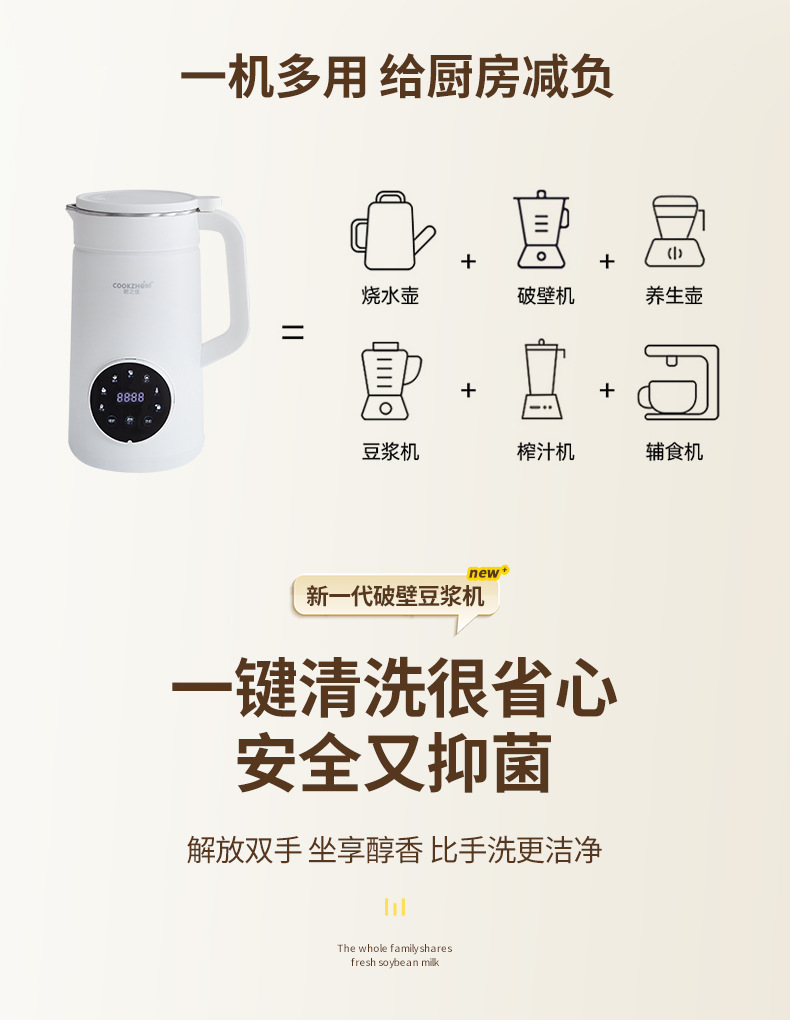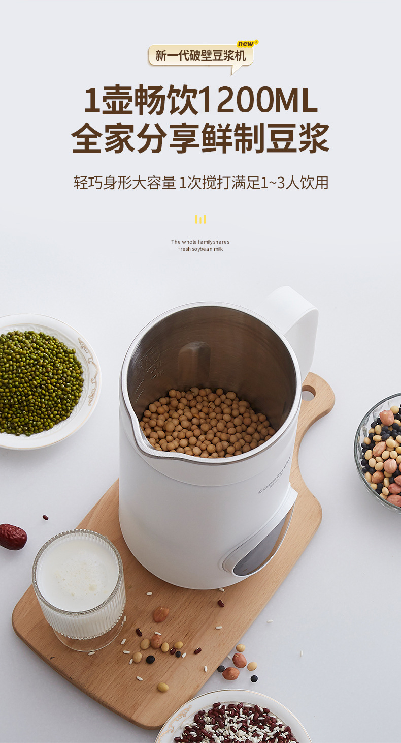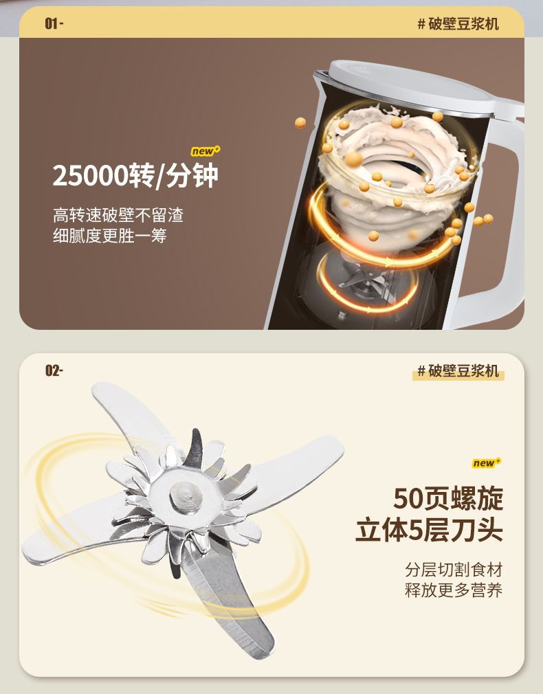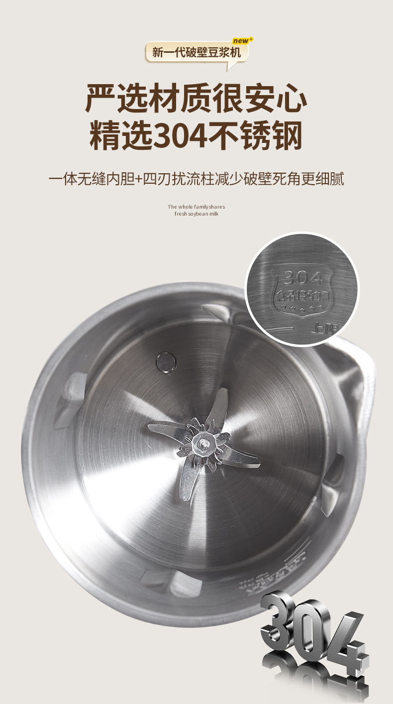 豆浆机全自动免煮小型破壁3-5人多功能12叶不锈钢免煮破壁