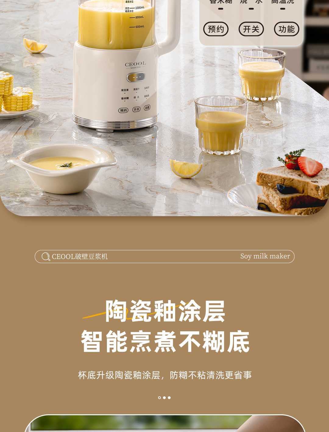 多功能豆浆机家用1L大容量全自动免过滤智能料理破壁机辅食搅拌机