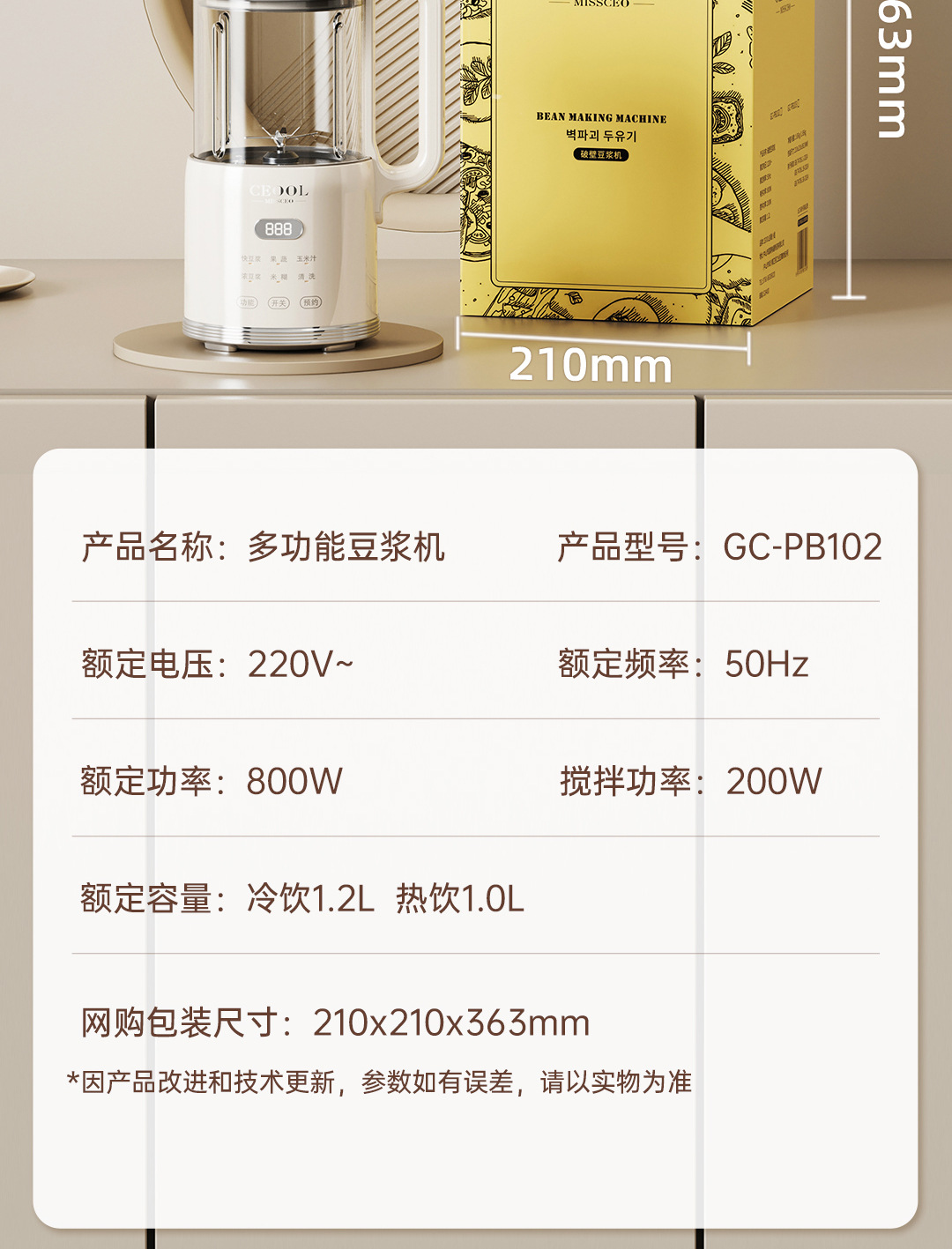 PB102豆浆机1.2L-亮白色