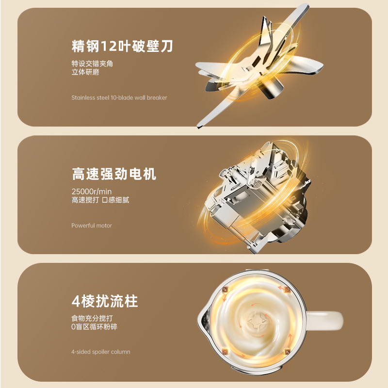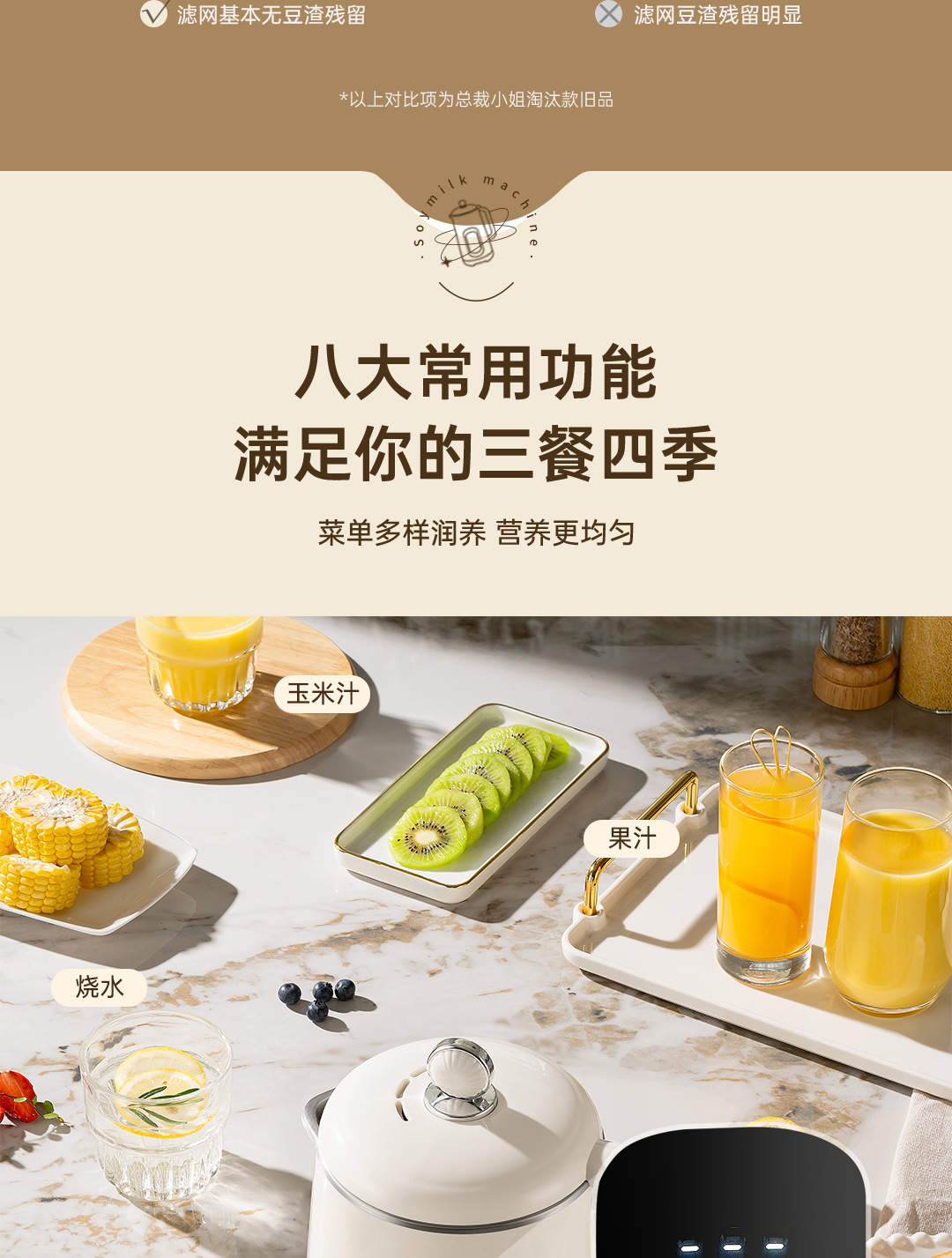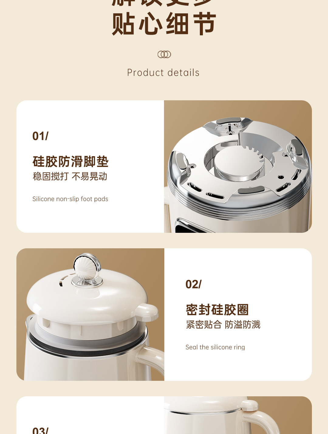 豆浆机3-4人全自动小型家用静音辅食料理机免煮过滤多功能破壁机
