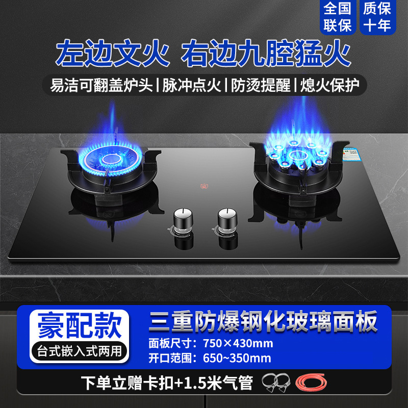 大火力煤气灶双灶家用天然气燃气灶魔碟灶液化气可翻盖炉头