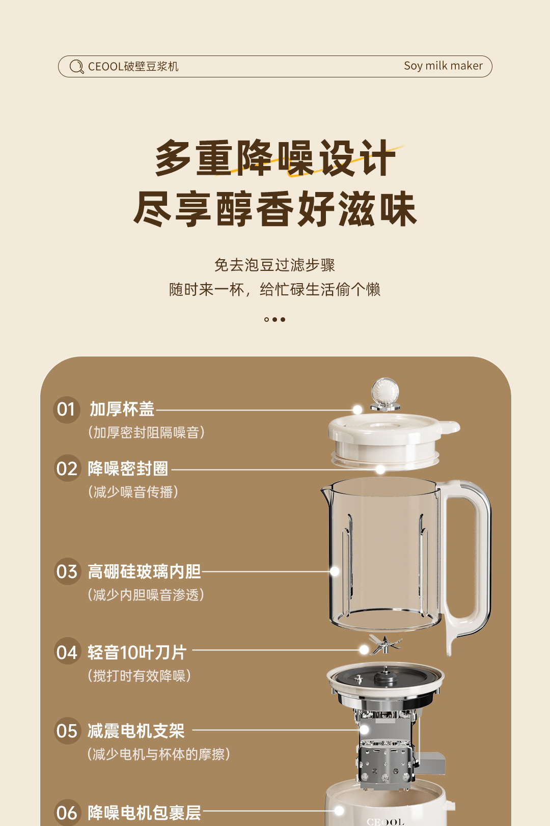静音破壁机3-4人家用全自动豆浆机免过滤多功能料理机