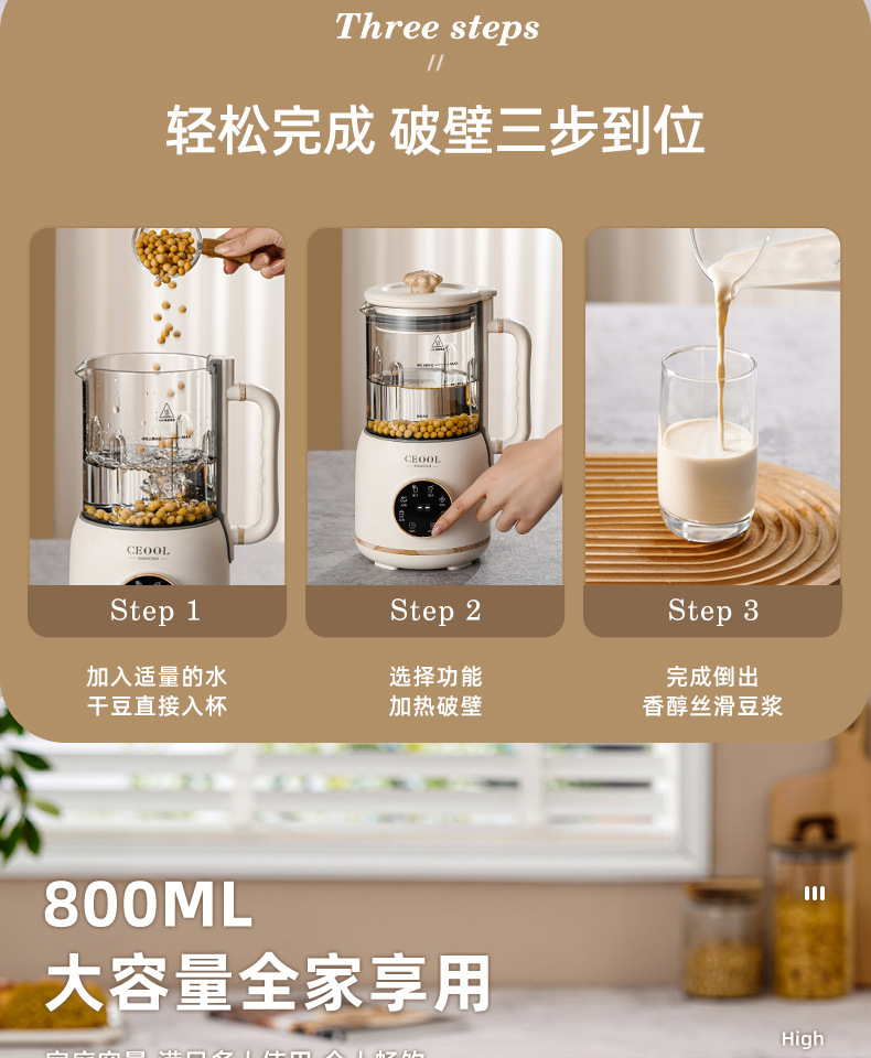 破壁机2025新款家用全自动静音小型豆浆机无渣免煮免滤榨汁机