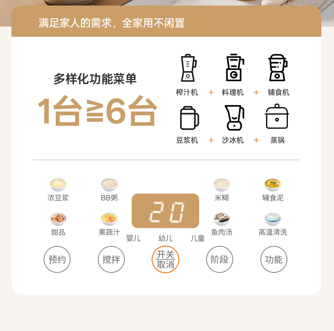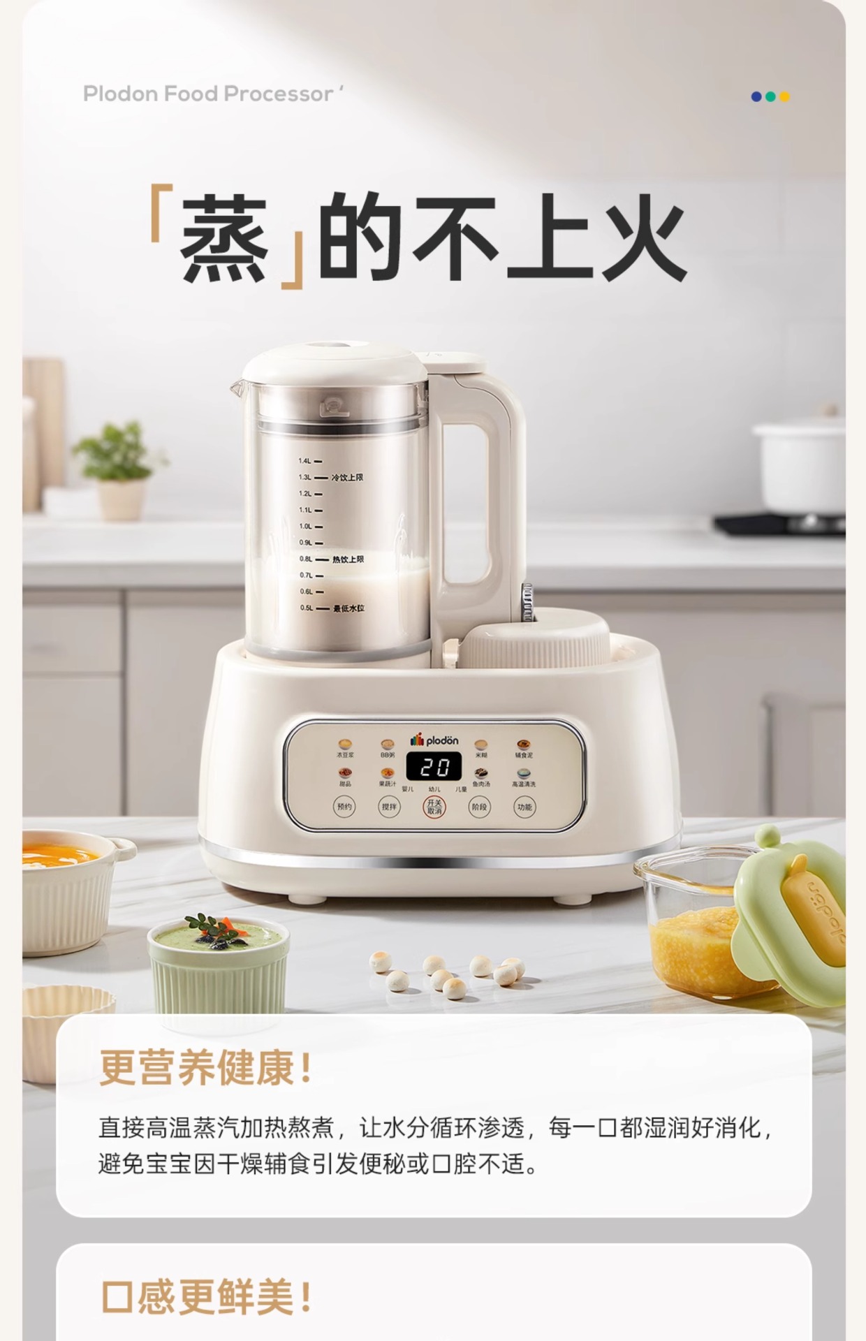 蒸汽破壁机婴幼儿辅食料理机流食搅拌蒸煮一体多功能烹饪机