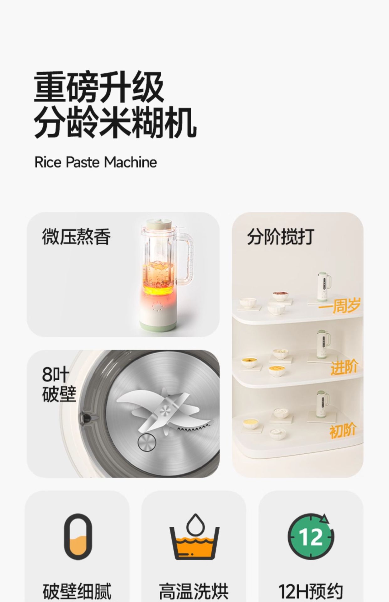 微压破壁机多功能料理机全自动婴儿辅食家用米糊机