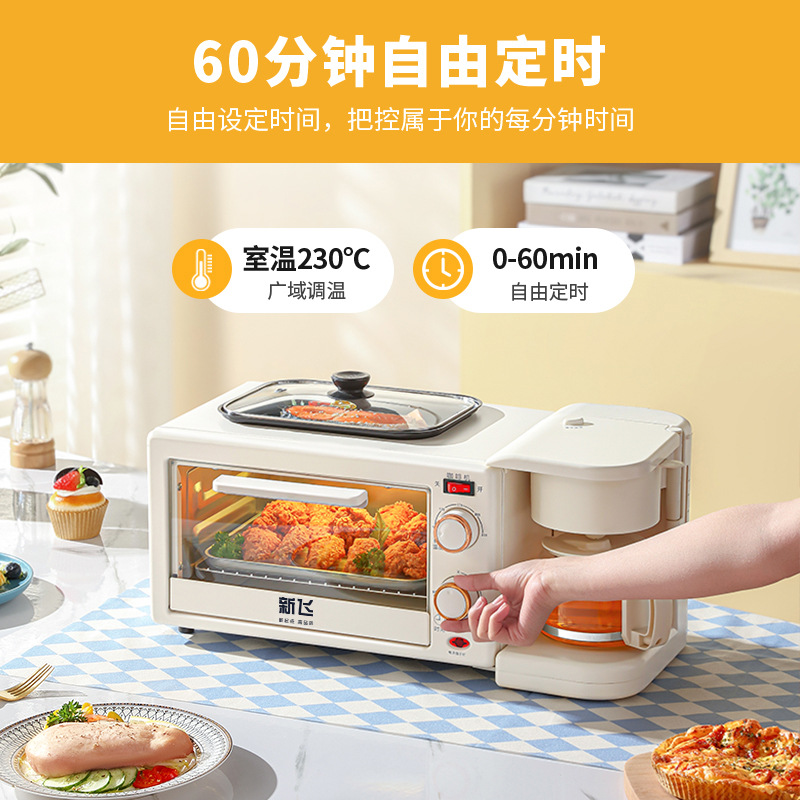 三合一早餐机家用煎烤蒸煮一体锅电烤箱多功能三明治咖啡机