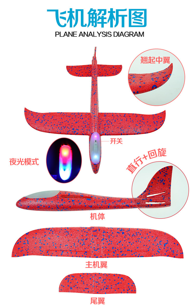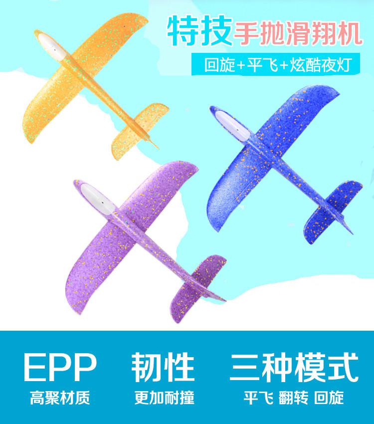 发光特技版手抛飞机epp泡沫飞机双孔回旋玩具飞机投掷滑翔机航模