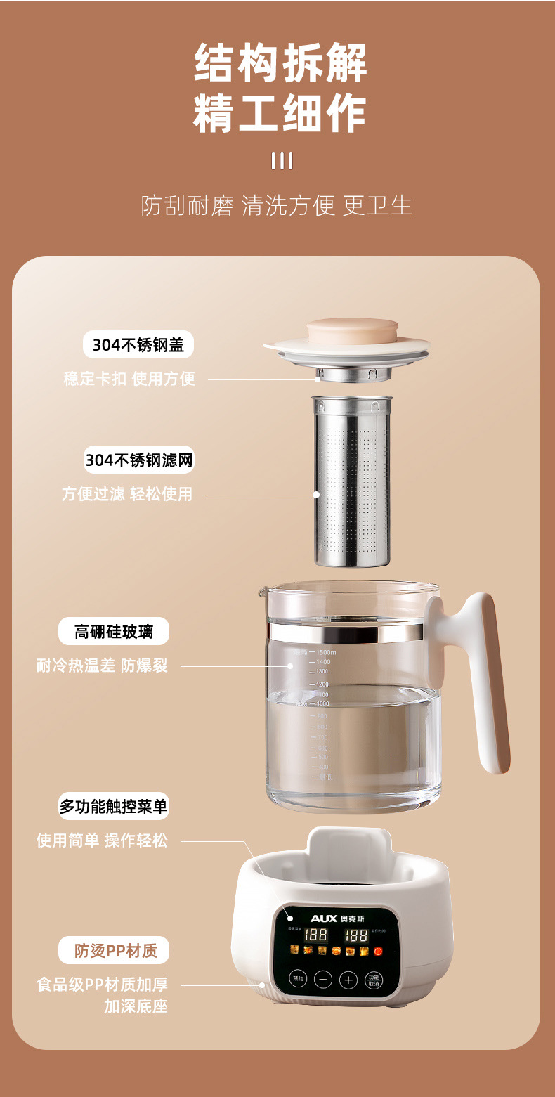 多功能全玻璃养生壶婴儿调奶器温奶器家用电热水壶烧水壶