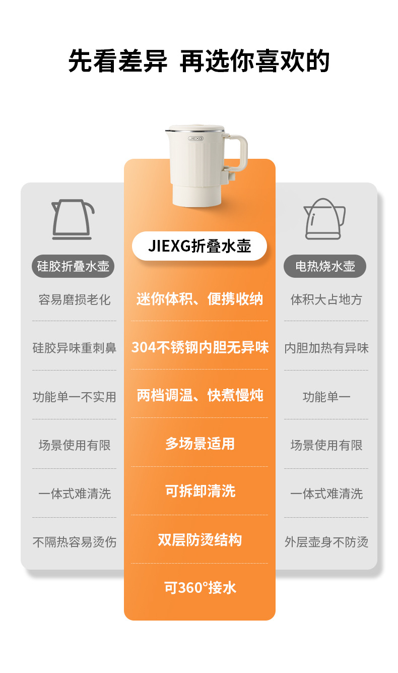 折叠式电热水壶便携烧水壶全自动烧水小型旅行不锈钢可折叠