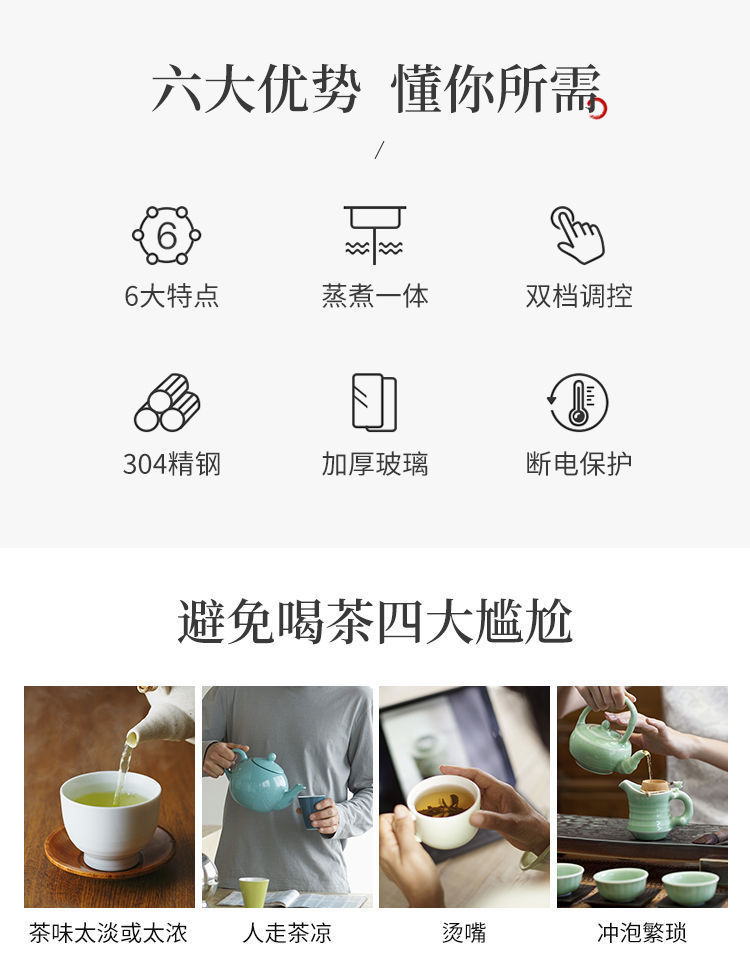 安化黑茶煮茶器普洱玻璃电热水壶蒸茶壶蒸汽电泡茶壶全自动保温