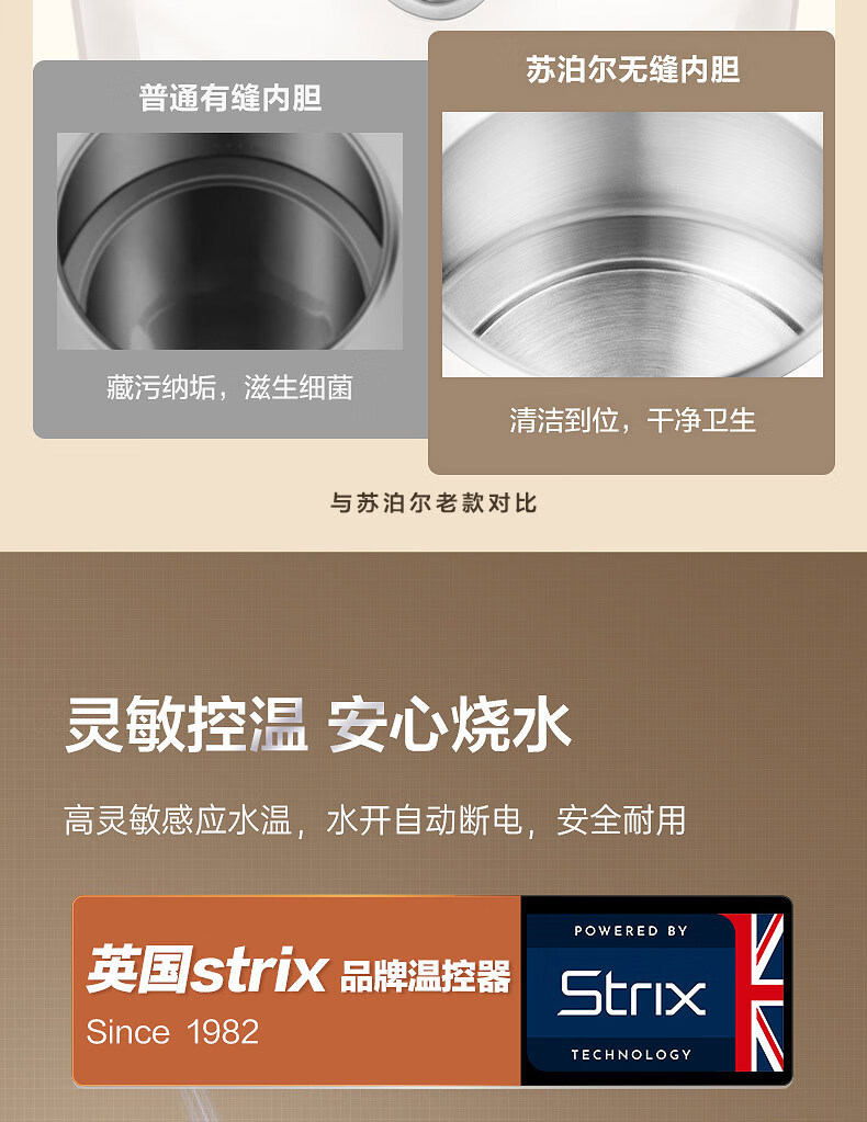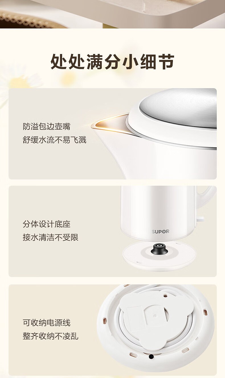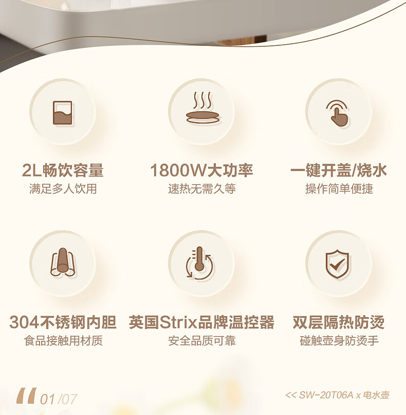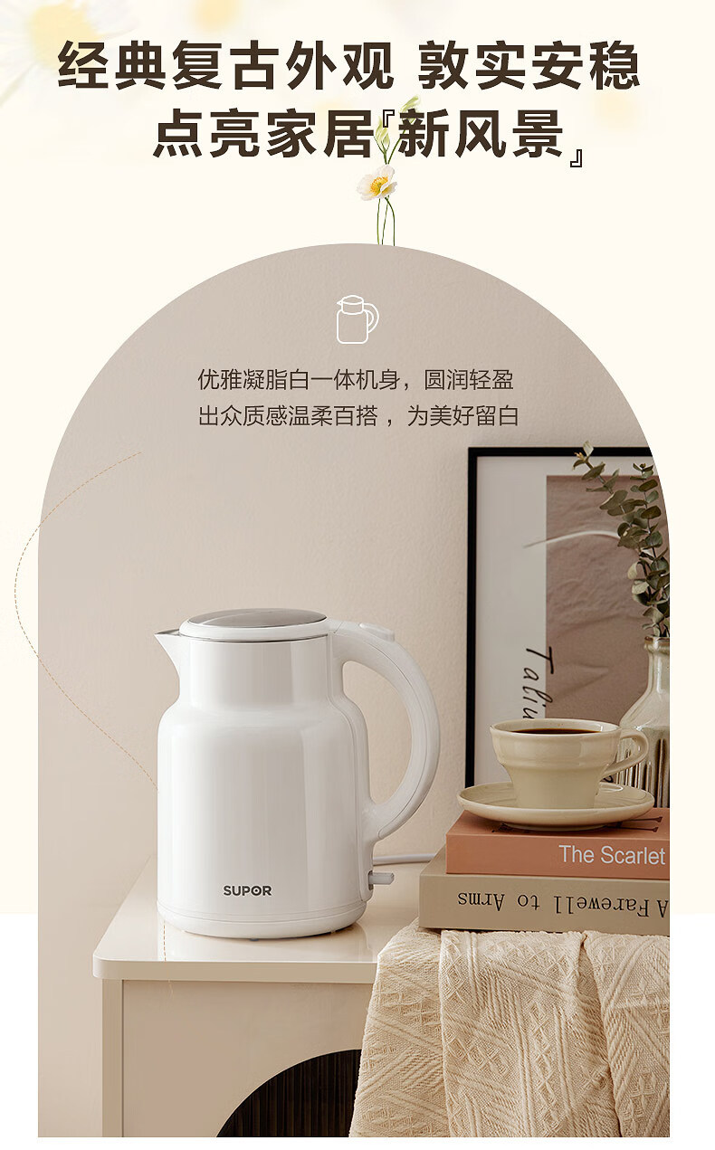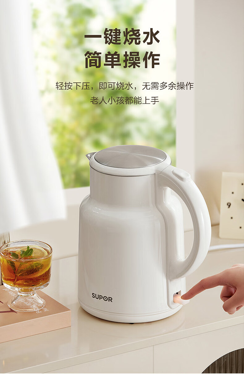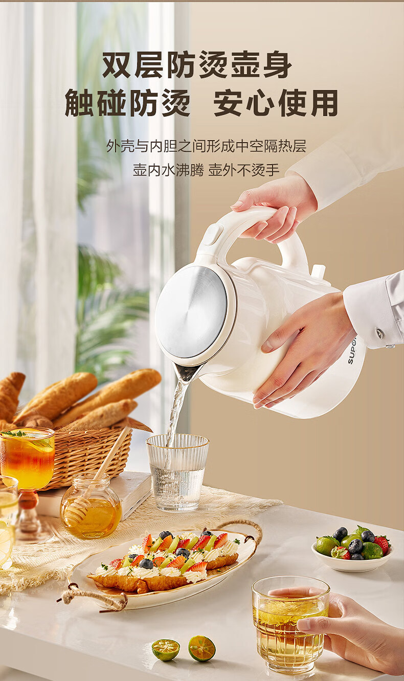 苏泊尔电水壶热水壶2L全钢无缝双层防烫电热水壶烧水壶SW-20T06A