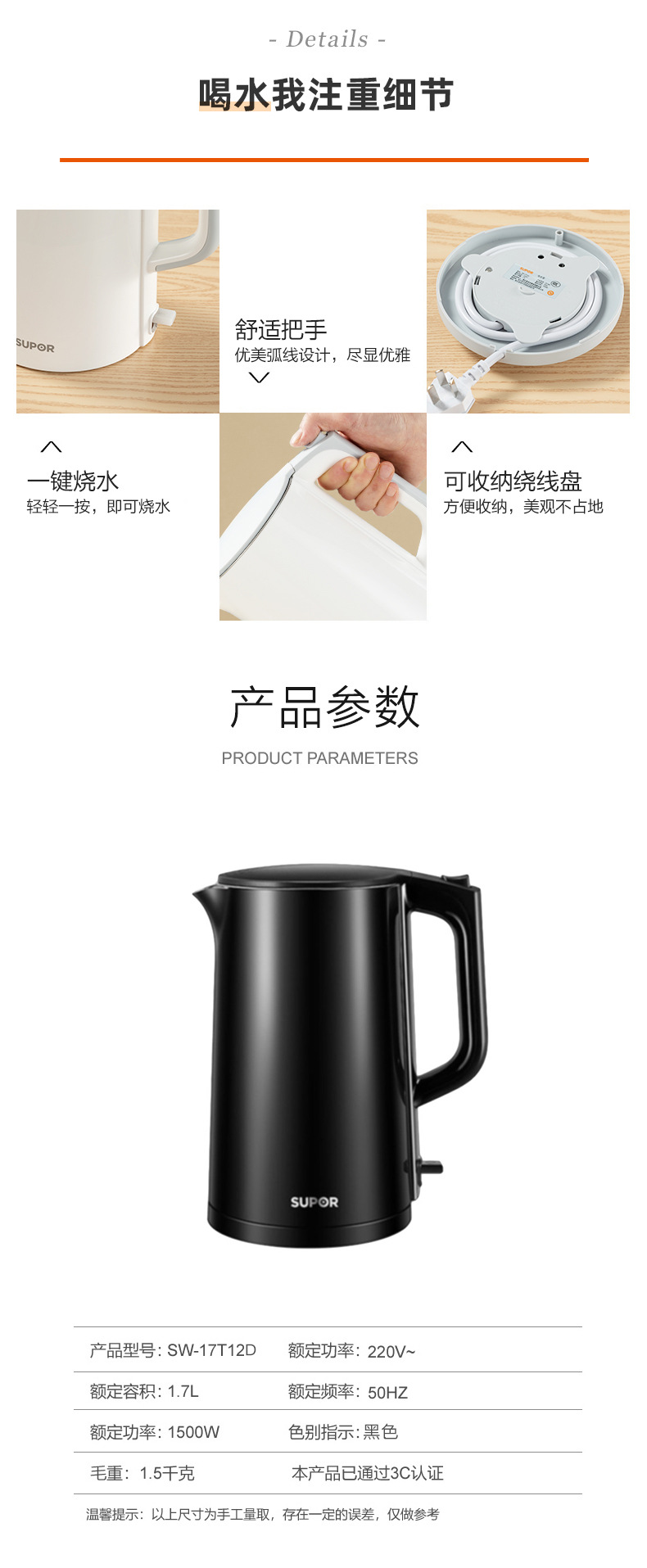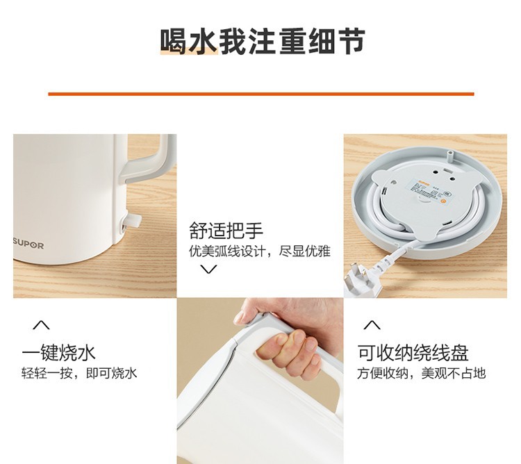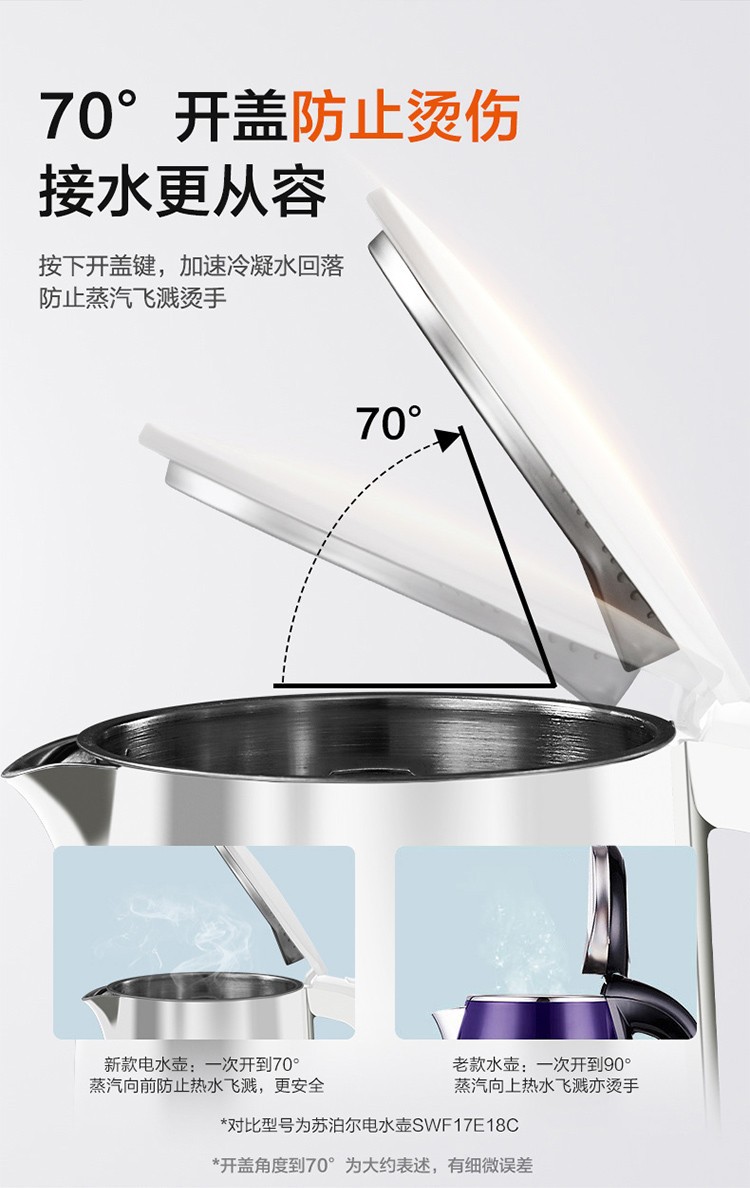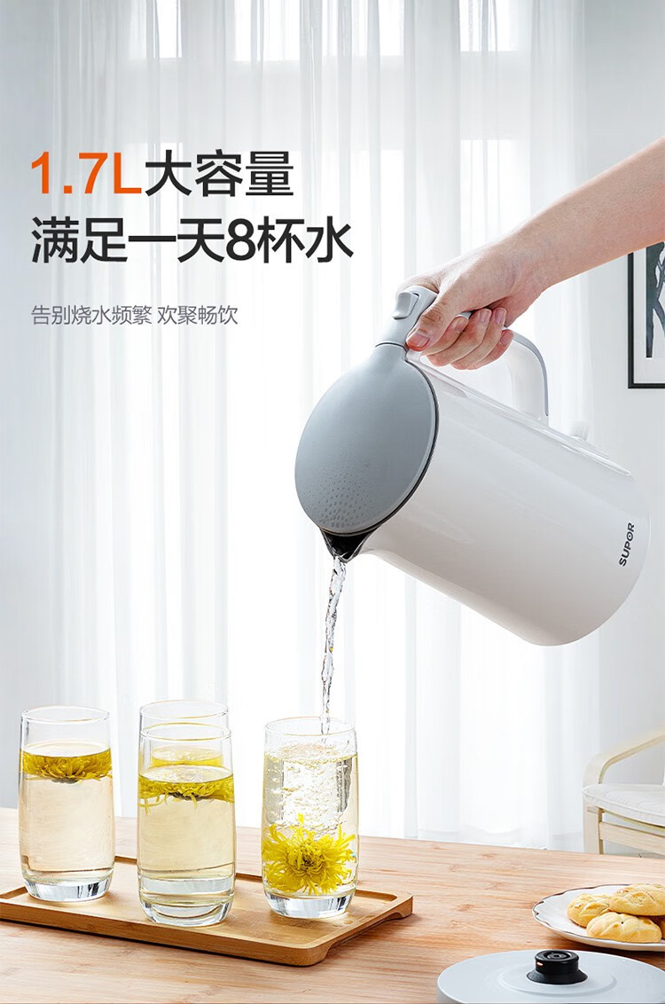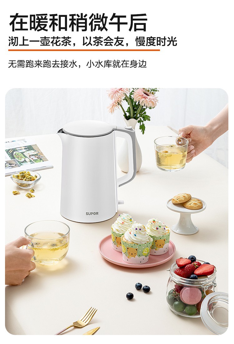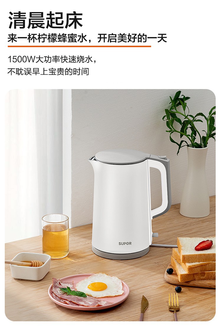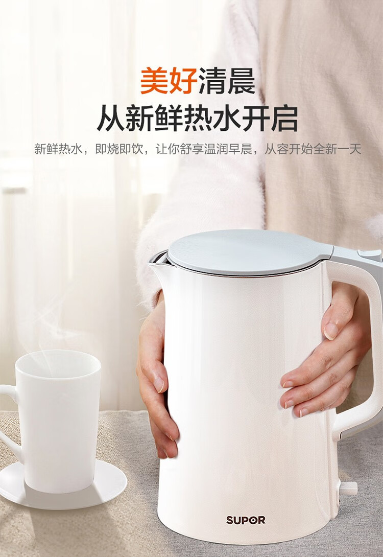 苏泊尔电热水壶1.7L双层防烫304不锈钢开水壶SW-17T12D/SW-17T12C