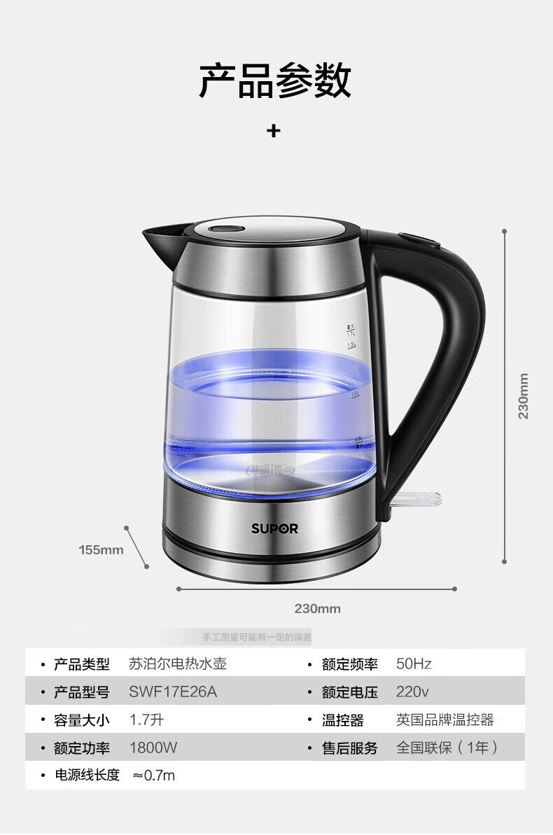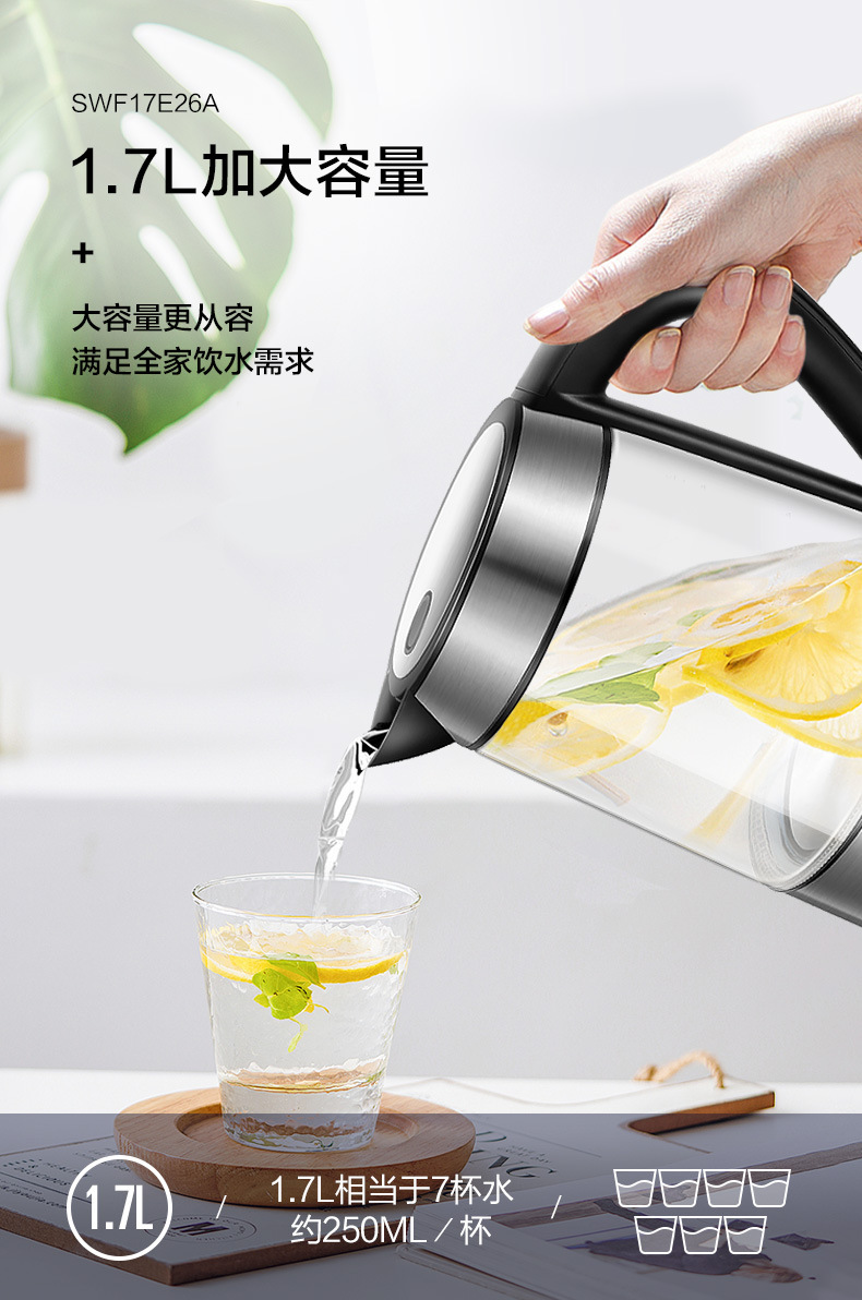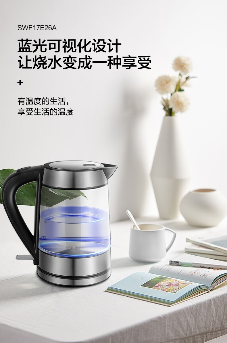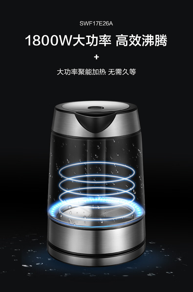 电热水壶1.7升蓝光水壶304不锈钢防干烧电水壶SWF17E26A