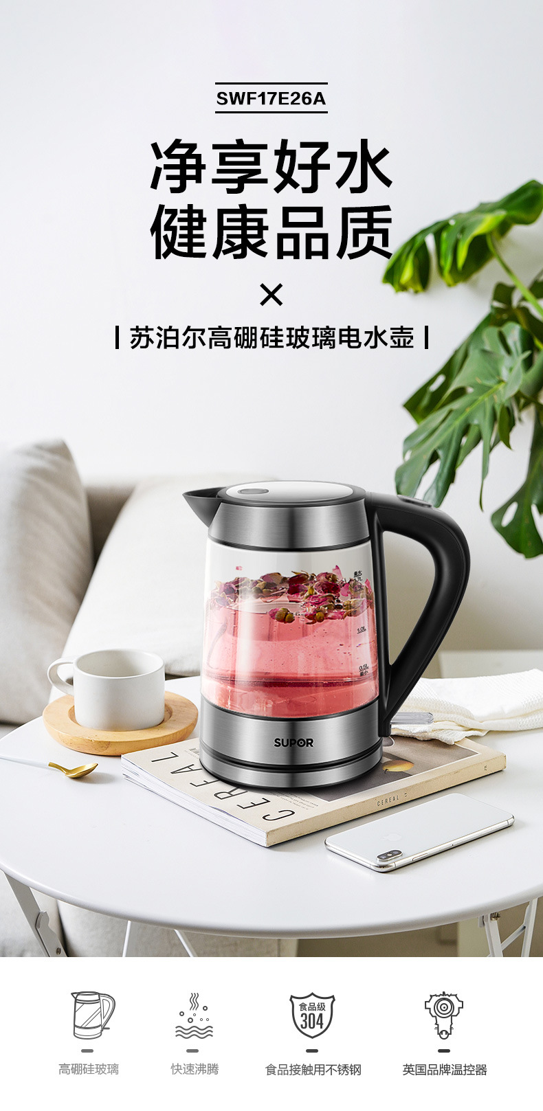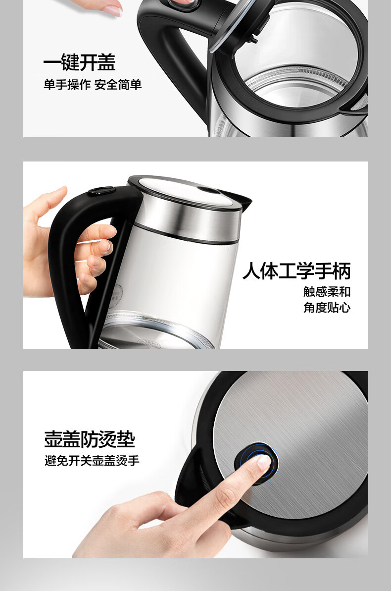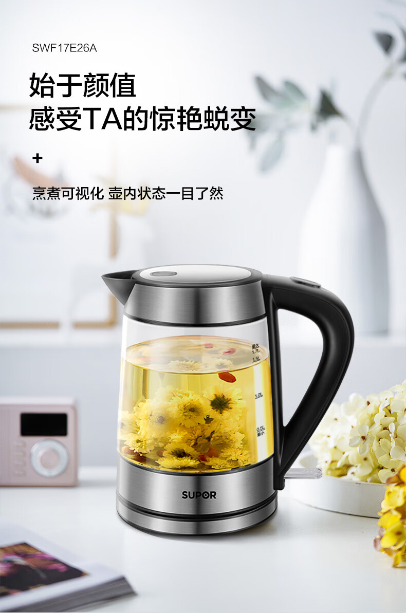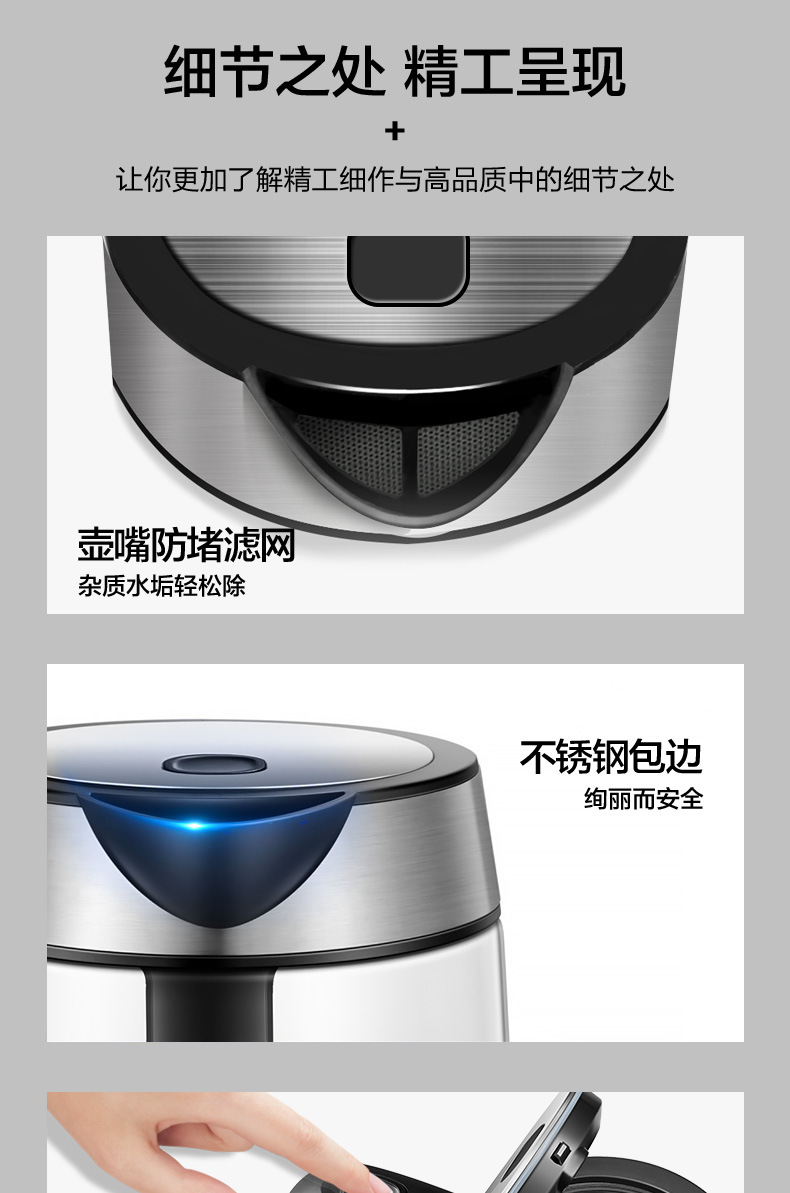 电热水壶1.7升蓝光水壶304不锈钢防干烧电水壶SWF17E26A