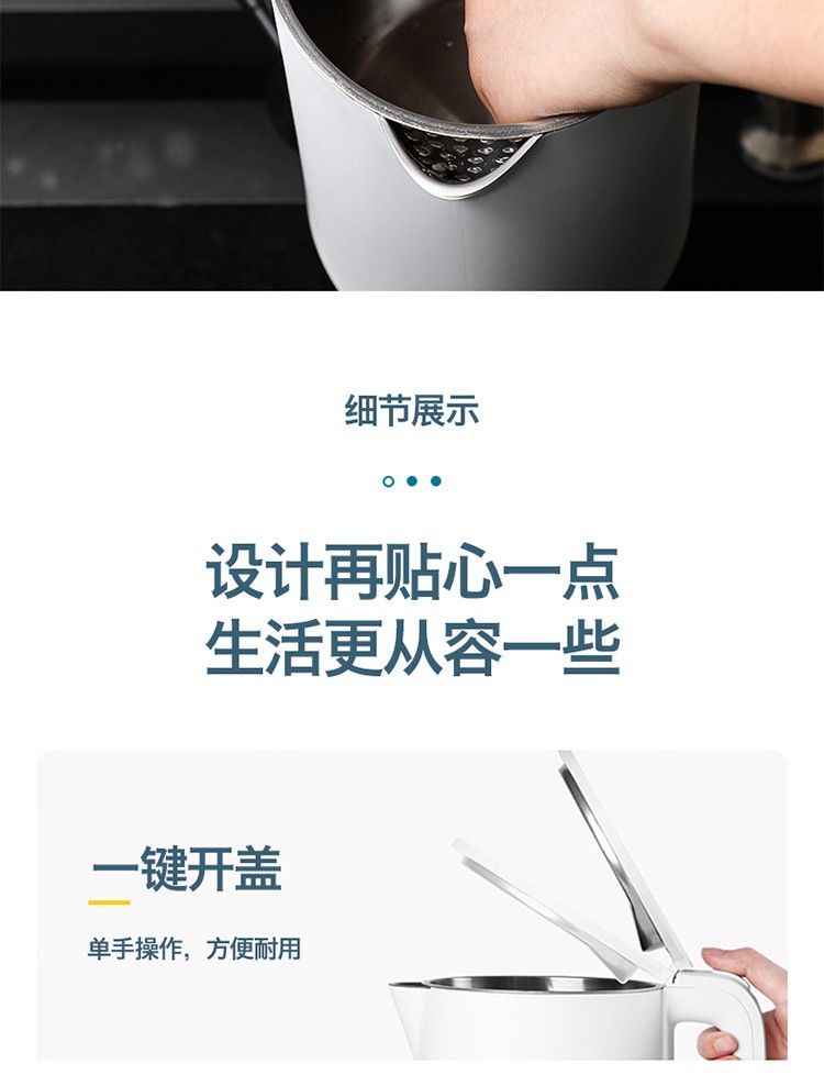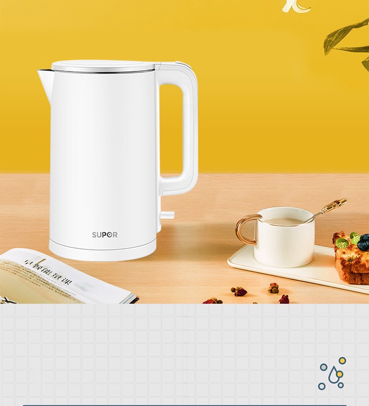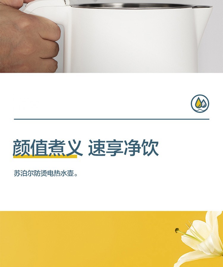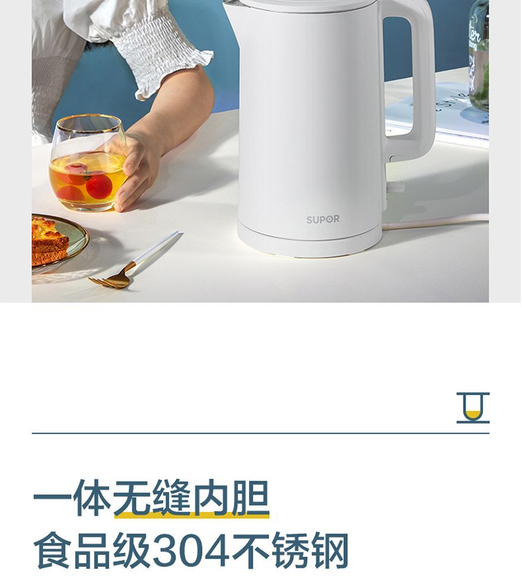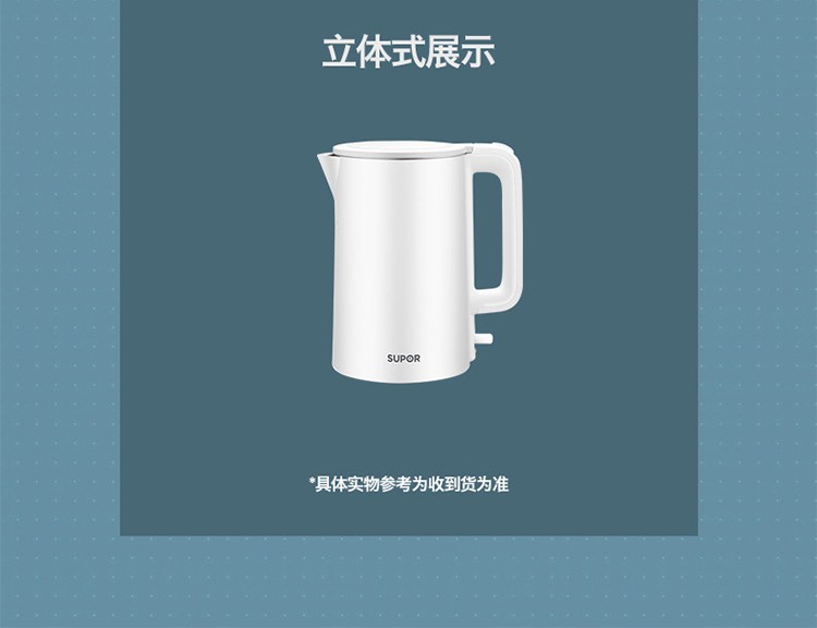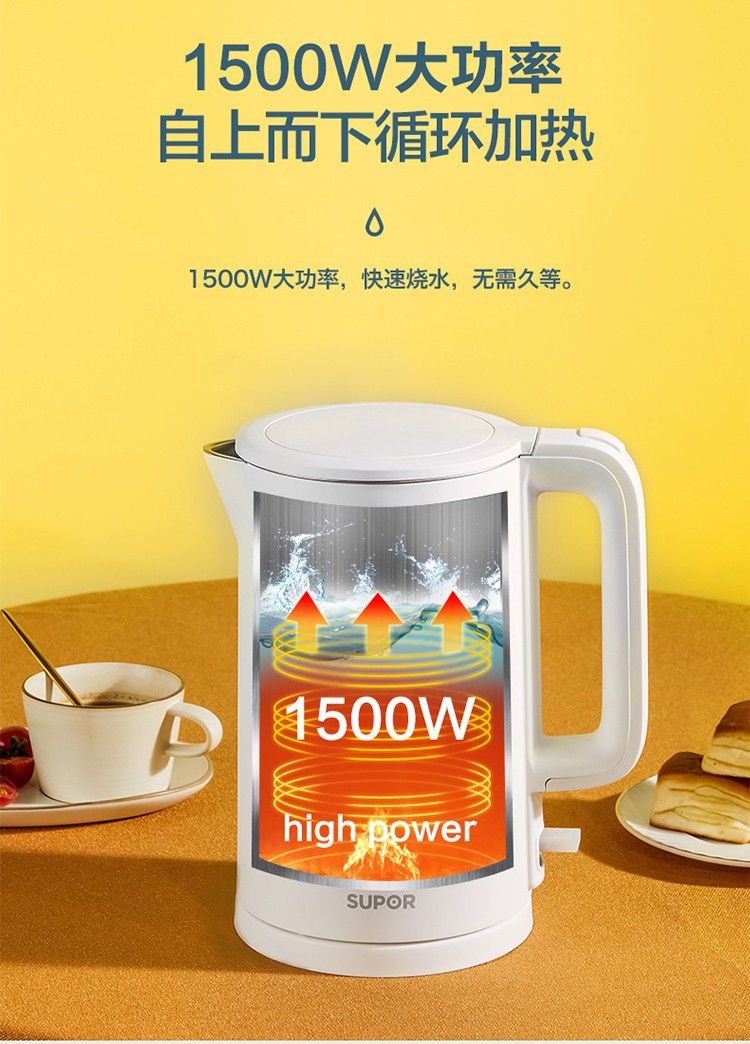 苏泊尔电热水壶1.5L双层防烫304不锈钢无缝内胆自动断电SW-15T715