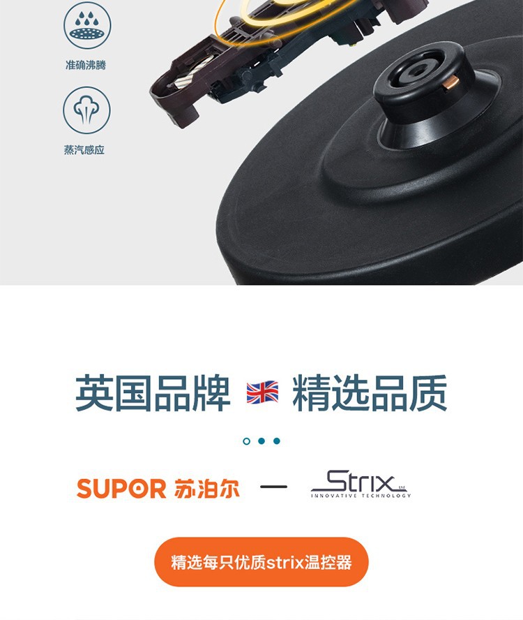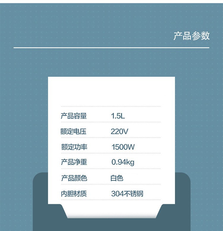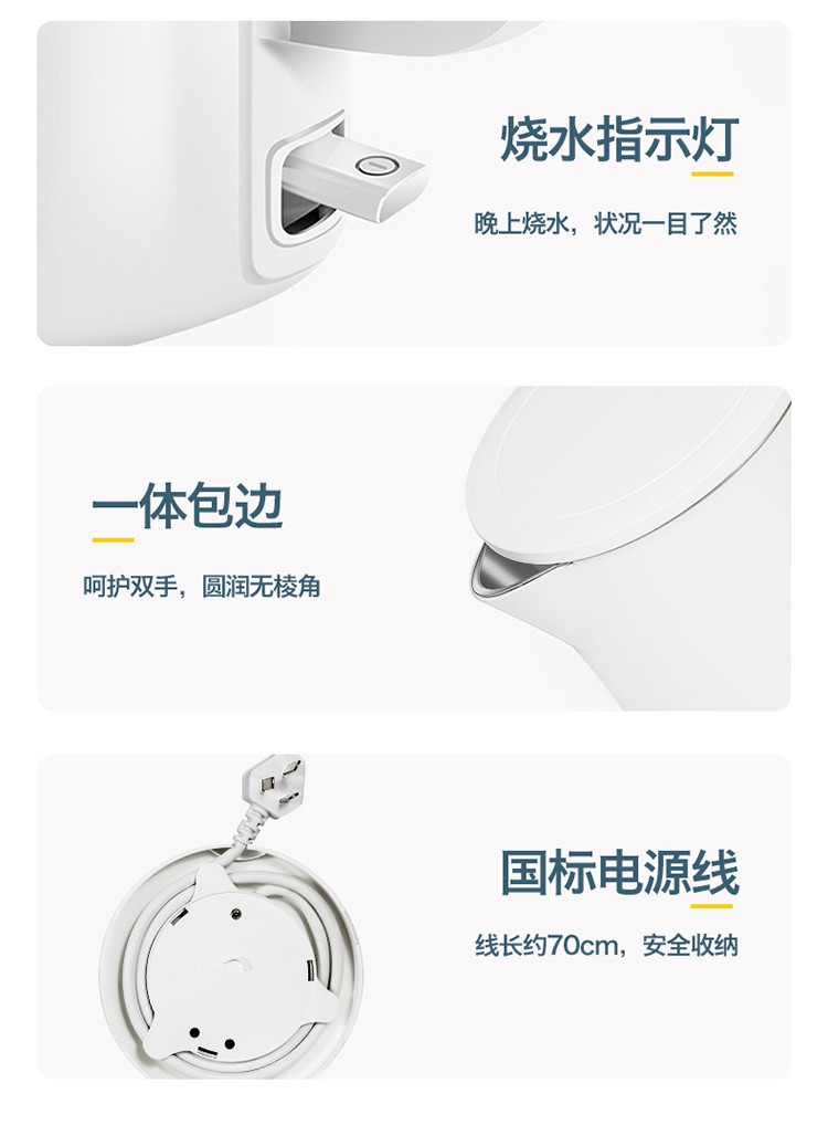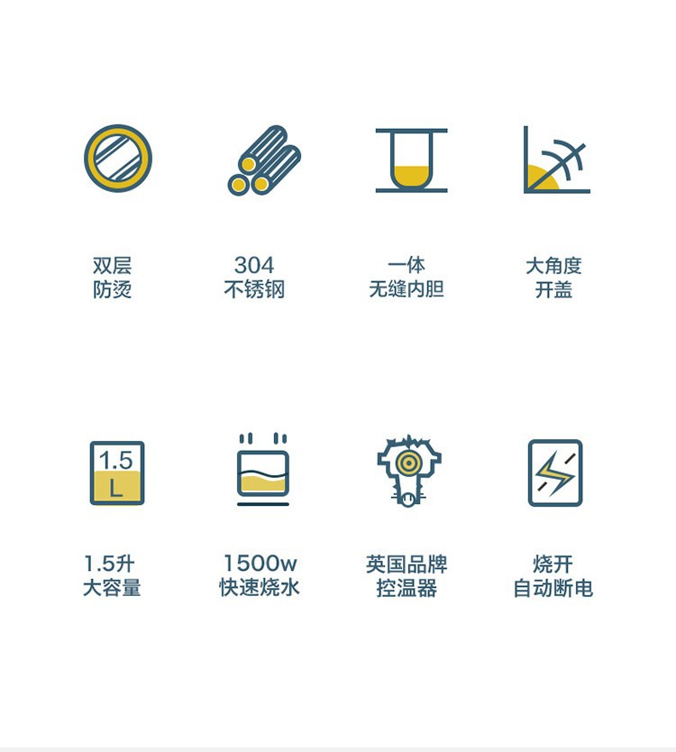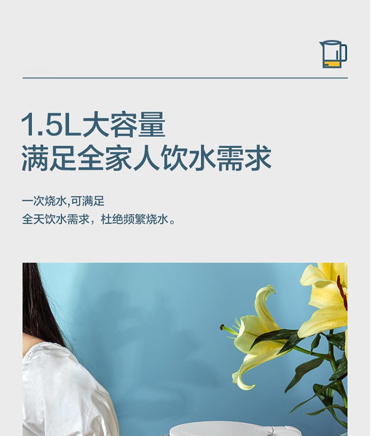 苏泊尔电热水壶1.5L双层防烫304不锈钢无缝内胆自动断电SW-15T715