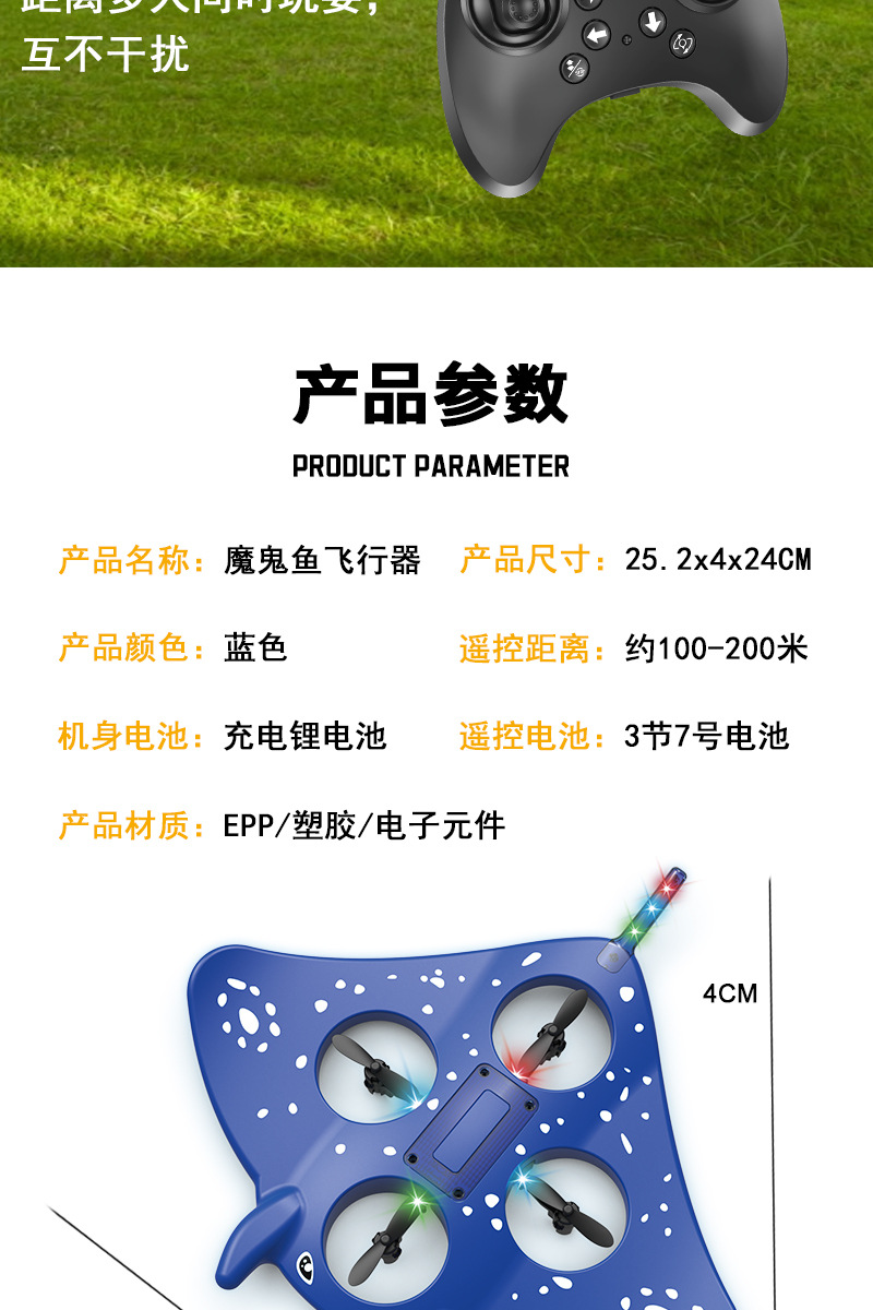 - UFO蓝色飞机器4轴-手柄款(升级大电池)
