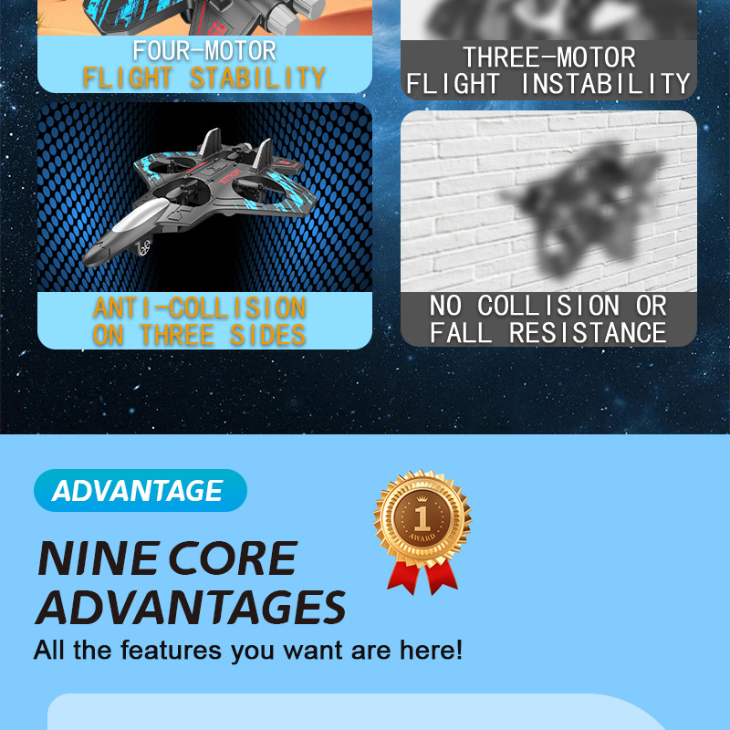 - UFO蓝色飞机器4轴-重力摇杆款(升级大电池)