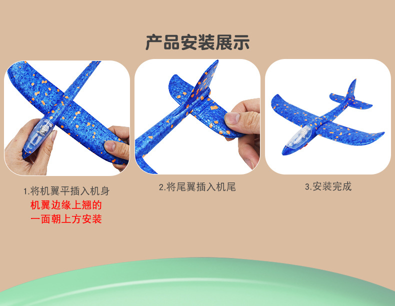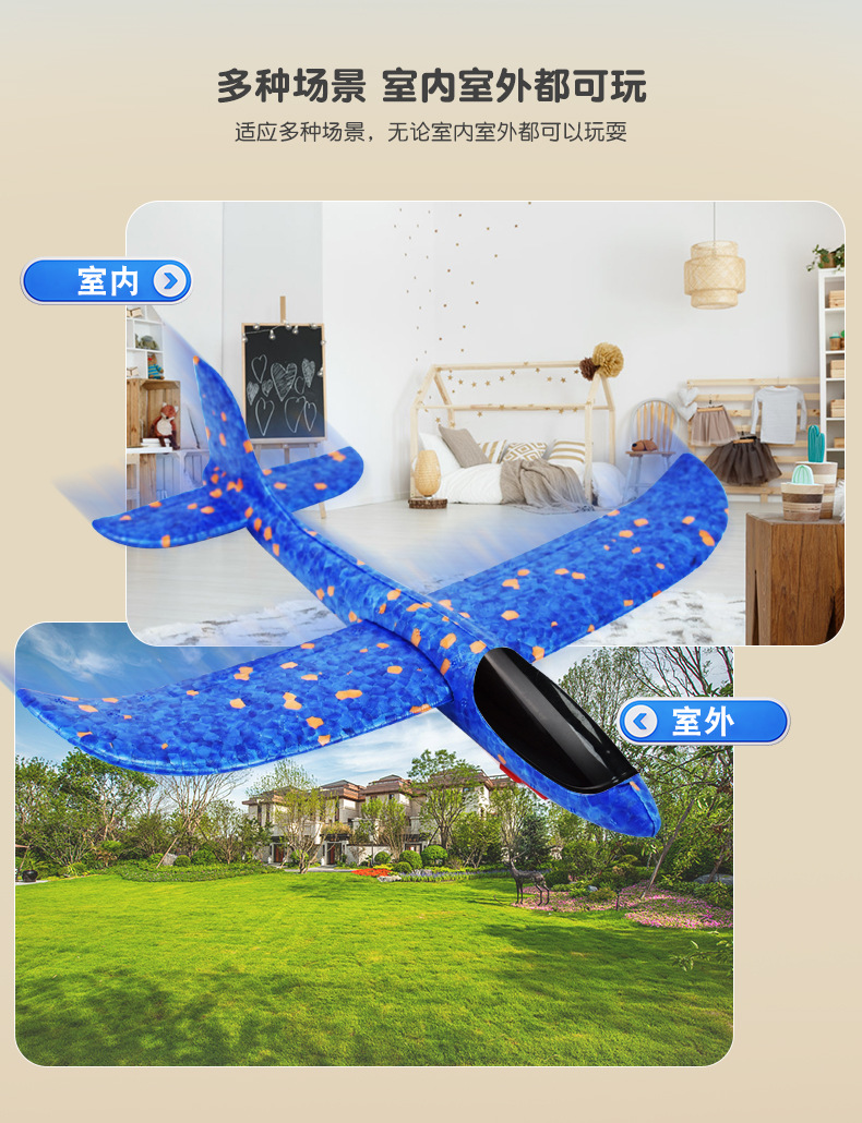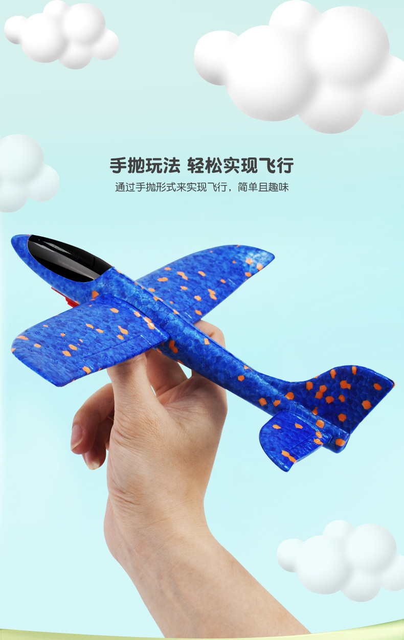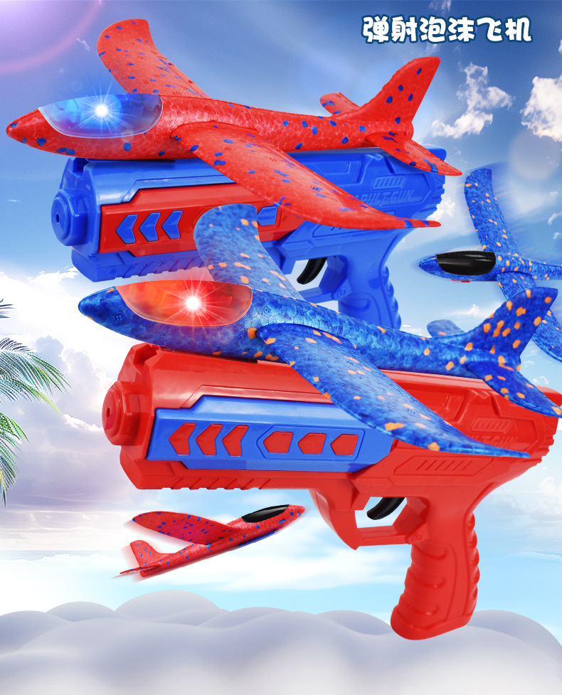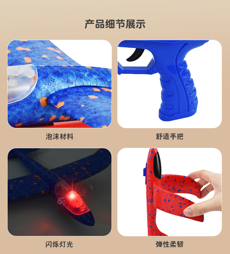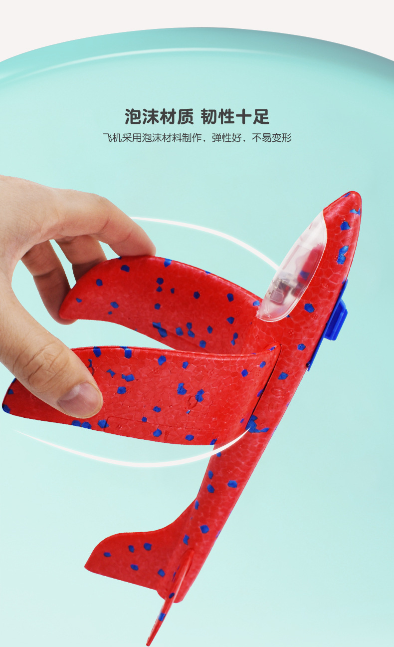 弹射飞机男孩闪光泡沫抛回旋滑翔飞机儿童玩具户外亲子互动