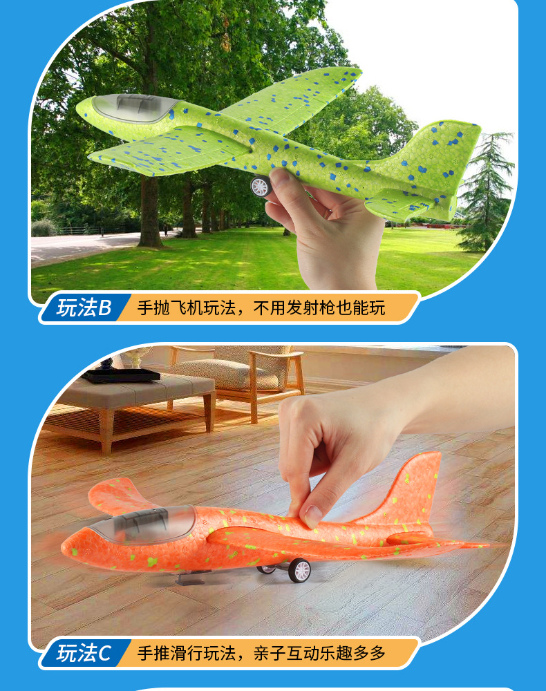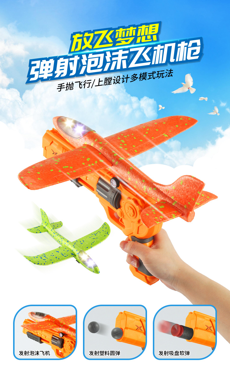 泡沫弹射飞机儿童男孩玩具手抛滑翔飞机发射器户外玩具