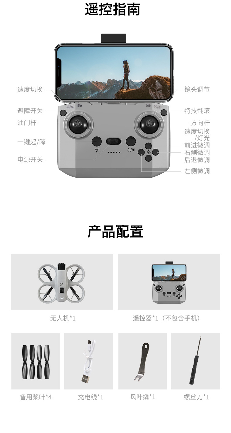 GT3迷你无人机航拍避障穿越机双摄像灯光mini飞行器入门级
