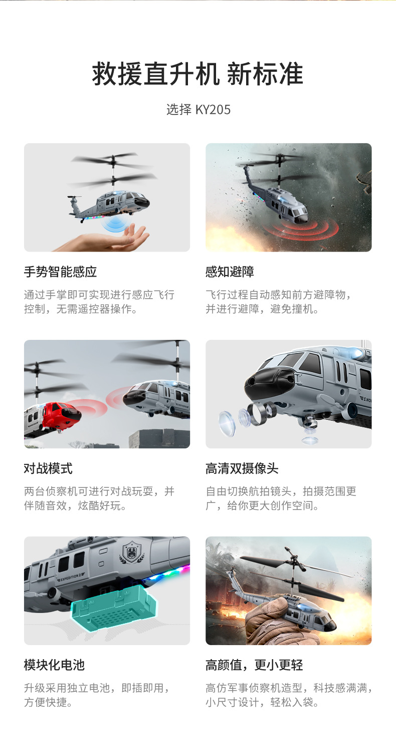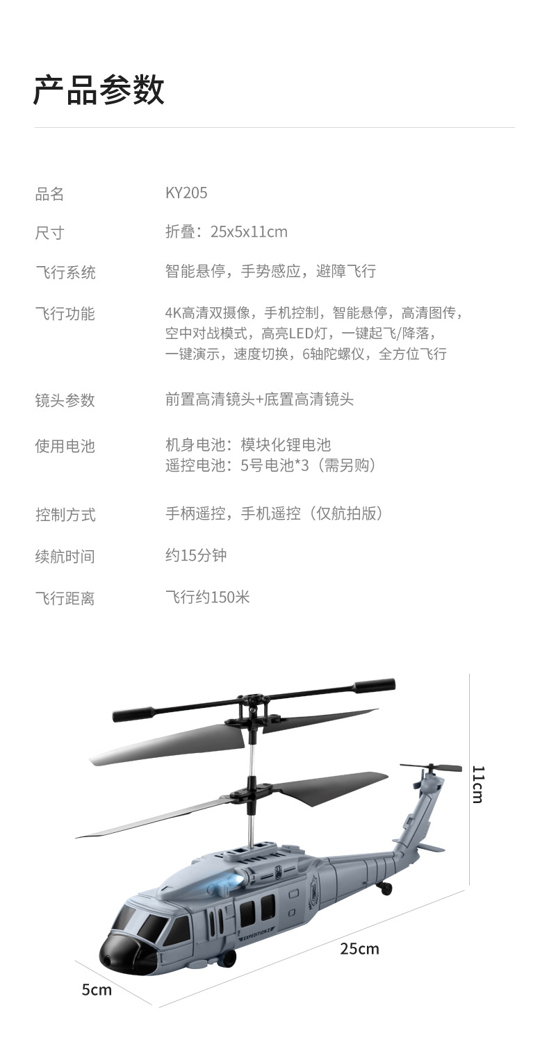 KY205黑蜂无人机侦察直升机避障高清航拍遥控飞机穿越机飞行器
